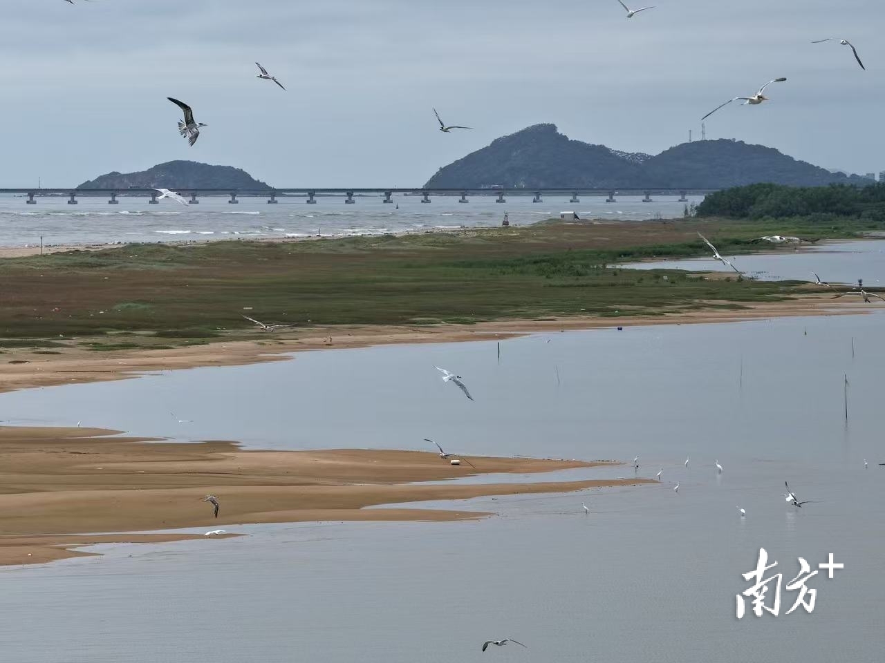 9月9日,汕头市澄海区培隆沙滩,沙滩上空不时有珍稀鸟类飞翔。