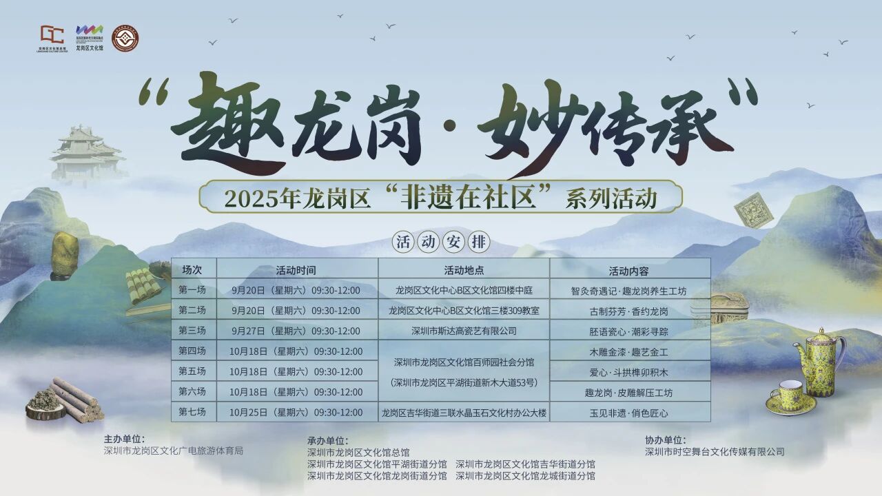 据了解,“趣龙岗·妙传承”2025年龙岗区“非遗在社区”系列活动共安排七场体验,后续还将推出“胚语瓷心·潮彩寻踪”“木雕金漆·趣艺金工”“玉见非遗·俏色匠心”等特色活动,涵盖陶瓷、木雕、玉石等多个非遗领域,进一步推动非遗文化走进社区、贴近市民。