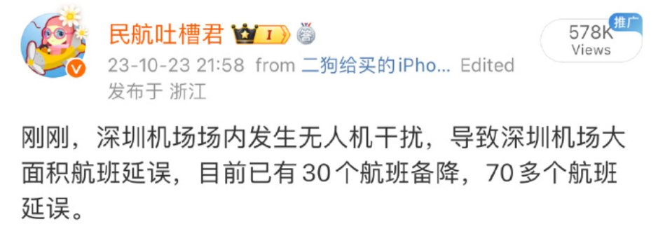 昨天(23日)23时49分,深圳机场发布情况通报称: