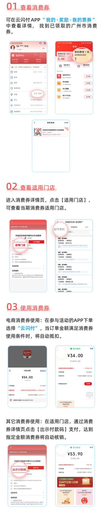 1.活动期间,获券消费者可在消费券有效期内,前往活动商户线下门店,通过云闪付APP付款码支付核销。
