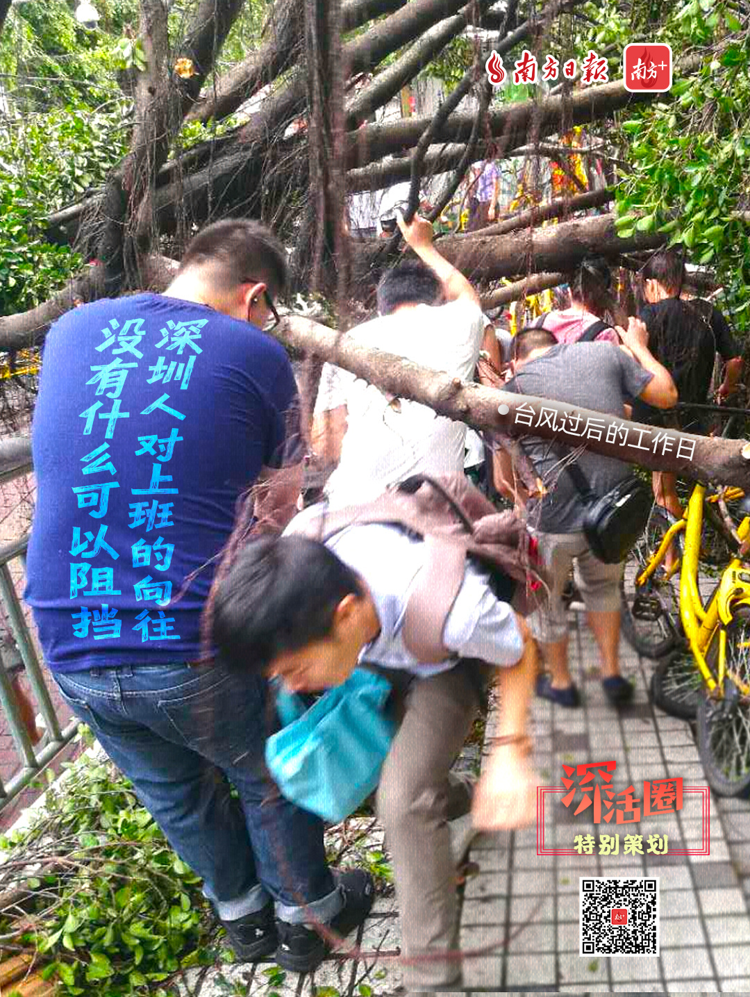 台风山竹之后,深圳多处出现树木倒伏,不过这并不能阻止深圳人想上班的心。