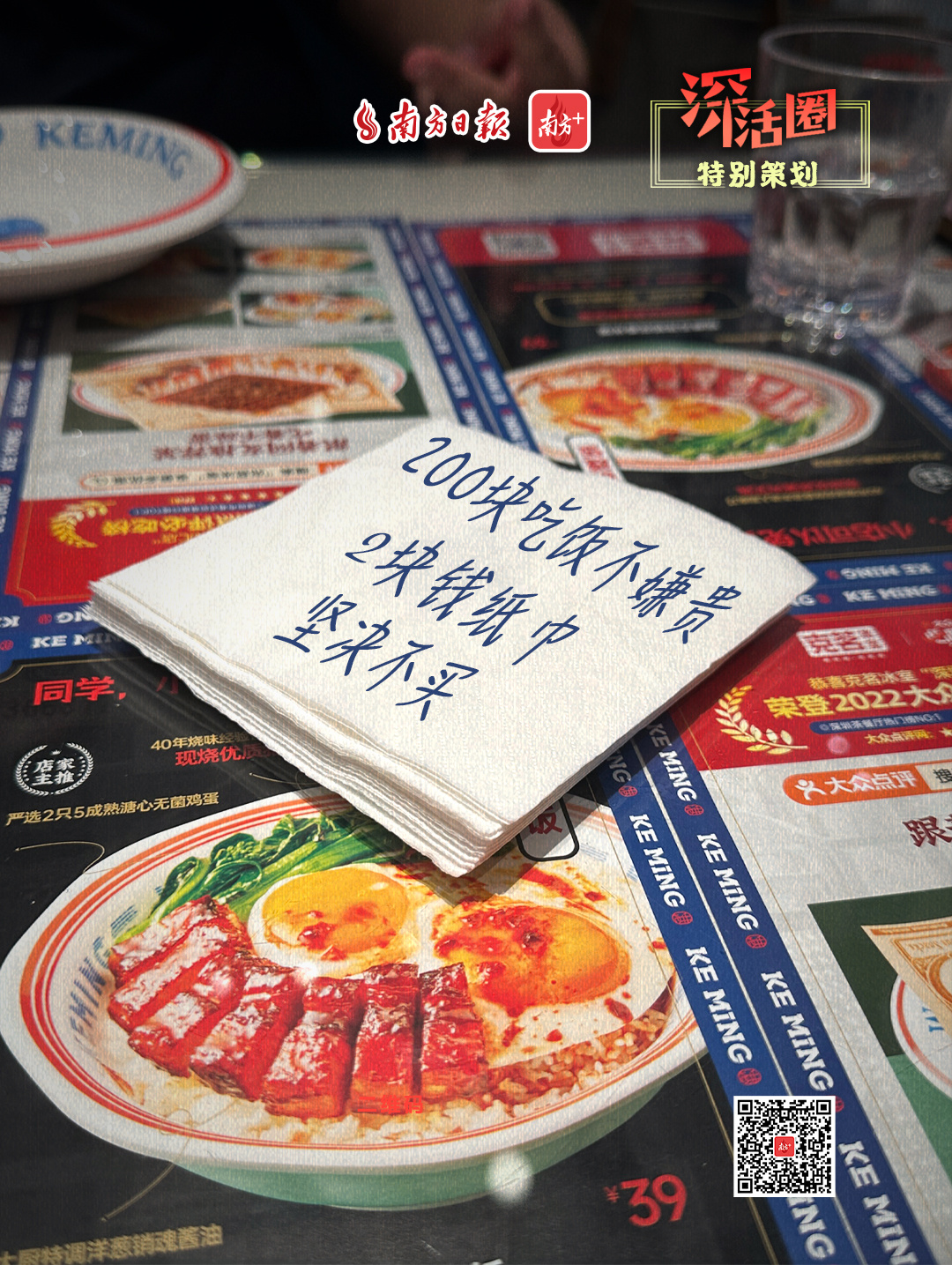 “200块吃饭不嫌贵,2块钱纸巾坚决不买”