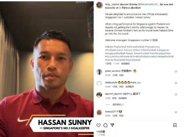 中国球迷的英雄!新加坡门将哈桑·桑尼火速接到代言