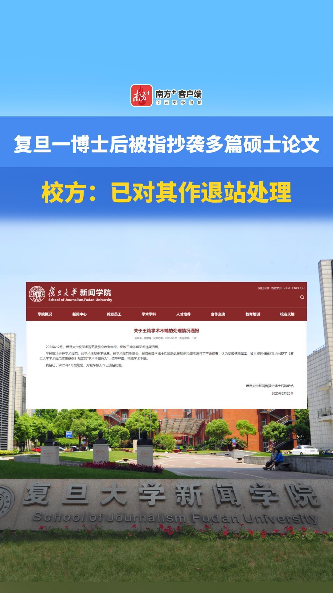 复旦一博士后抄袭多篇硕士论文,校方:已对其作退站处理