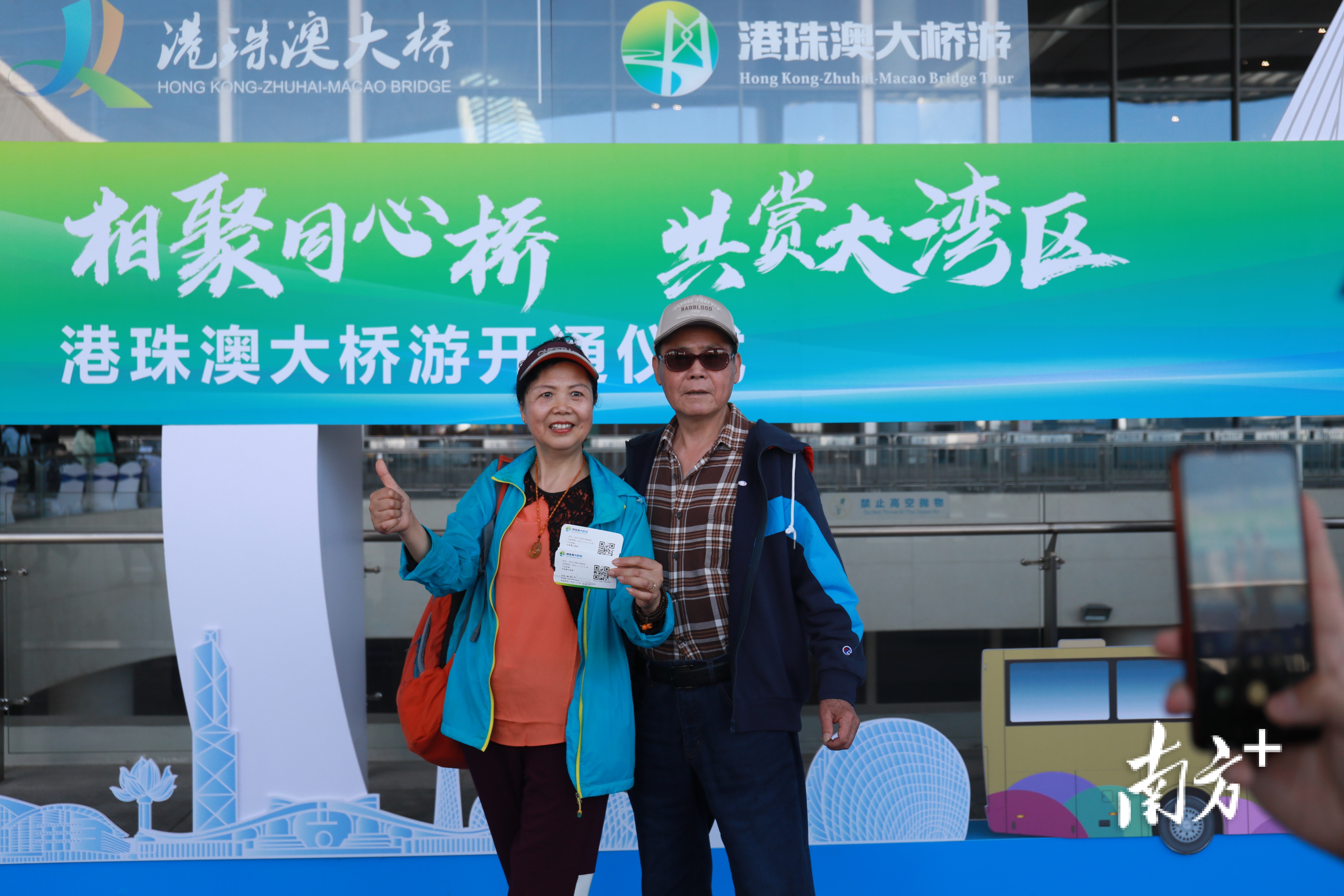 “开票后我们第一时间就赶紧买了票,非常幸运成为了大桥游首批旅客。”来自杭州的高先生和张女士此次特意赶来参加港珠澳大桥游,“非常激动和自豪,一路过来很震撼,为祖国的强大点赞!”张女士称赞道。