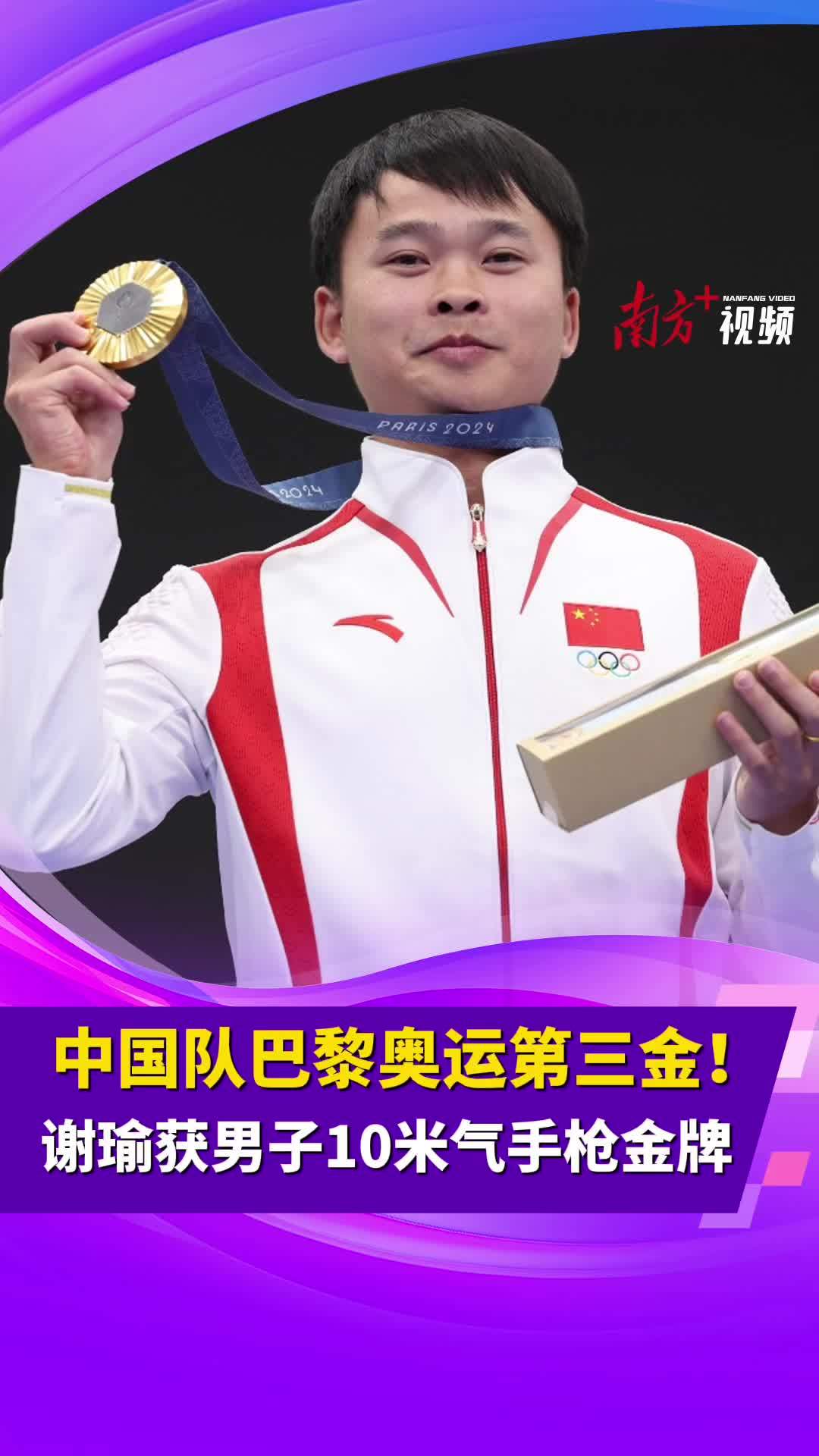 北京时间7月28日下午,在巴黎奥运会射击男子10米气手枪决赛上,“00后”选手谢瑜发挥出色,在资格赛排名第6位的情况下,决赛中一路逆袭,最终以240.9环的成绩夺得冠军,这是中国代表团在本届奥运会获得的第三枚金牌。