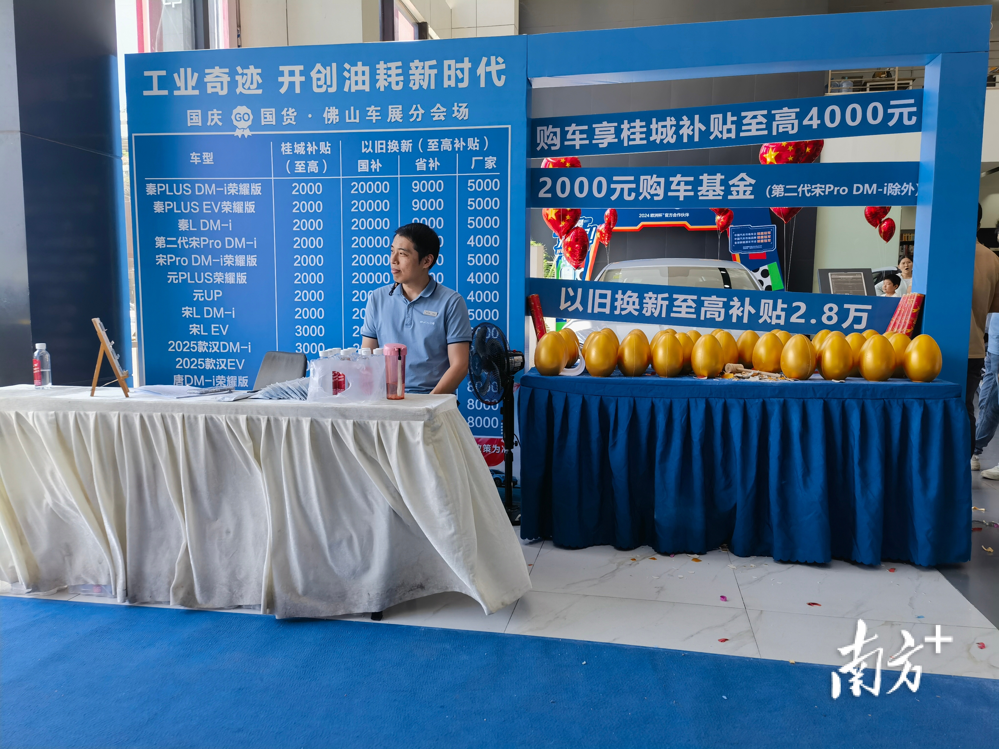 诚意十足的以旧换新政策也成为店家促销的良机。在佛山键马比亚迪4S店,南方+记者看到,该店在醒目位置张贴了政府部门和厂商推出的以旧换新政策,以及各款车型最高可享的补贴金额。