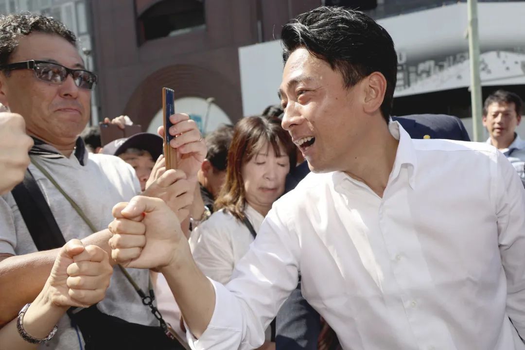 ▲2024年9月7日,日本东京,小泉进次郎(右)在银座中心呼吁市民支持他参选 图/视觉中国