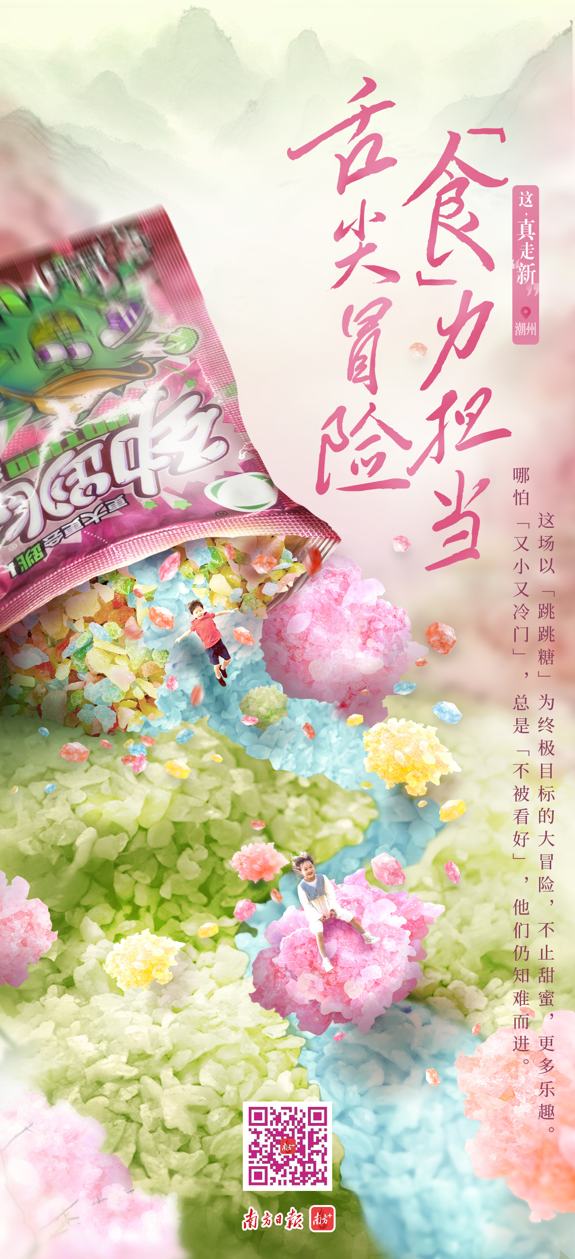 跳跳糖从这里被激活,不仅作为零食带来“舌尖上的跳动”,还赋予了烤鸭、炸鸡、冰淇淋等美食更多趣味与生动。它们远销全球100多个国家和地区,占有了七成的国际市场,“跳”得更高更远。
