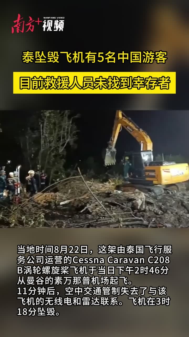 当地时间8月22日,一架原定由泰国素万那普国际机场飞往南部达叻府的小型飞机在泰国北柳府巴功县坠毁。机上载有7名乘客和2名飞行员,其中5名乘客是中国人。救援人员在沼泽地区的残骸中找到了身体部位和个人物品。机上9人无一幸存。详情>>