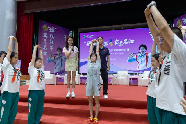 8月23日,全红婵走进广东实验中学与同龄人交流互动,分享成长故事。现场,全红婵亲自带领同学们学习水花消失术的手部动作要领,一起享受运动的乐趣。详情>>