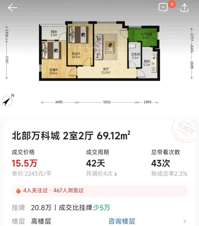 近日,清远一套两室两厅房源15.5万元卖出,均价仅2243元/平方米,引发市场关注并登上热搜。据悉,该套房源位于清远市清城区的北部万科城,于今年7月12日成交。详情>>