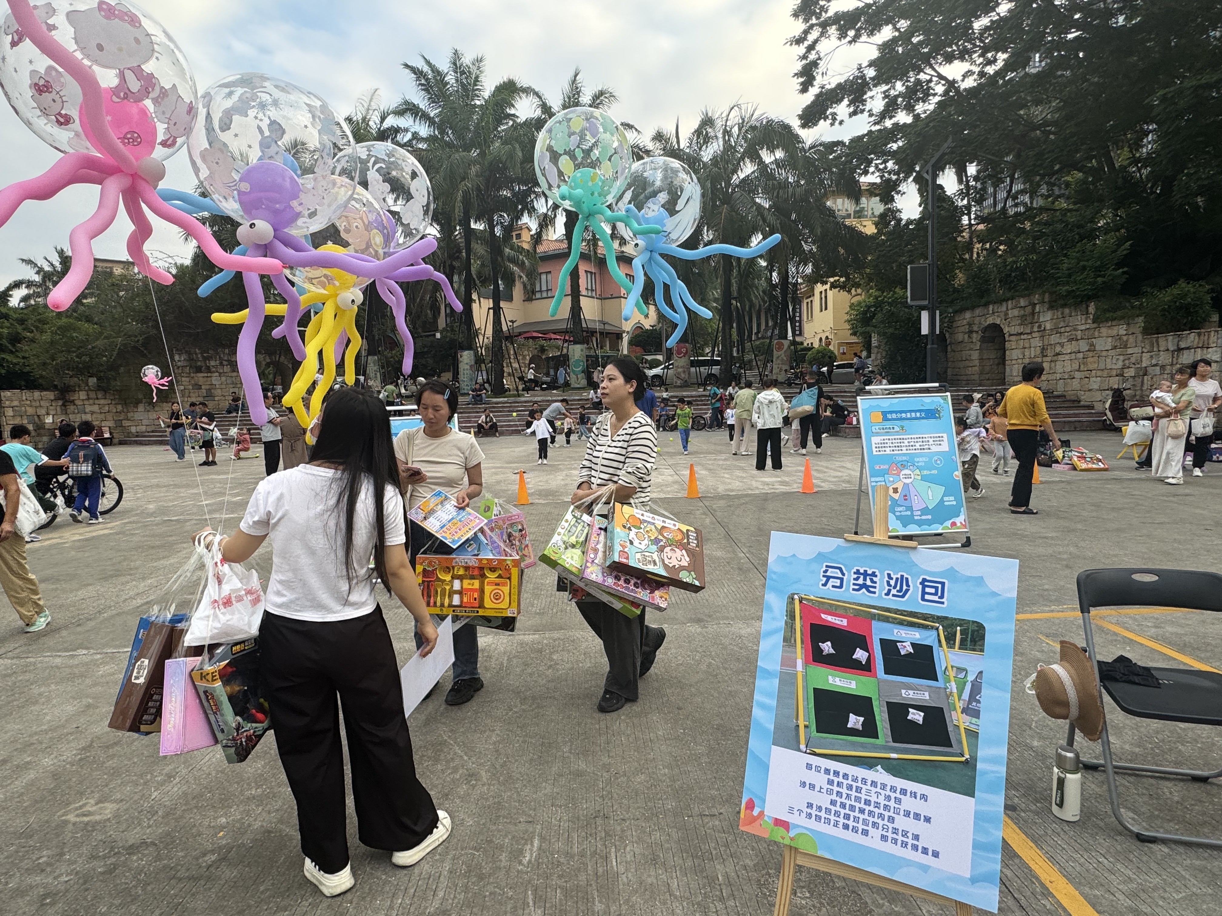 除了寓教于乐的游戏环节,主题宣传区通过摆放清晰的分类指引展板,向居民们系统性地普及了垃圾分类的重要意义、具体分类标准以及源头减量的小窍门。现场工作人员与志愿者解答居民提出的各种分类问题。而在礼品兑换区,居民们凭借在游戏环节中获得的积分,可以兑换实用且富有教育意义的纪念品,这不仅是对参与热情的肯定,更是将环保理念具象化,鼓励居民将绿色习惯带回家。