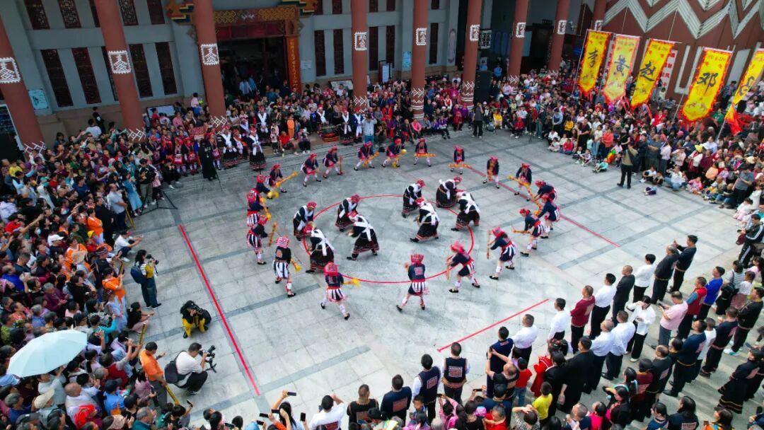 瑶族阿哥阿妹身着盛装、击长鼓而舞,在“开开合”“开开合合”的竹杆间来回跳跃。瑶歌清亮宛转,如天籁般贯穿始终,为节日增添不绝的韵律与情感。