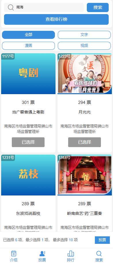 可搜索、选择你喜欢的科普作品点击作品下方“投票”按钮