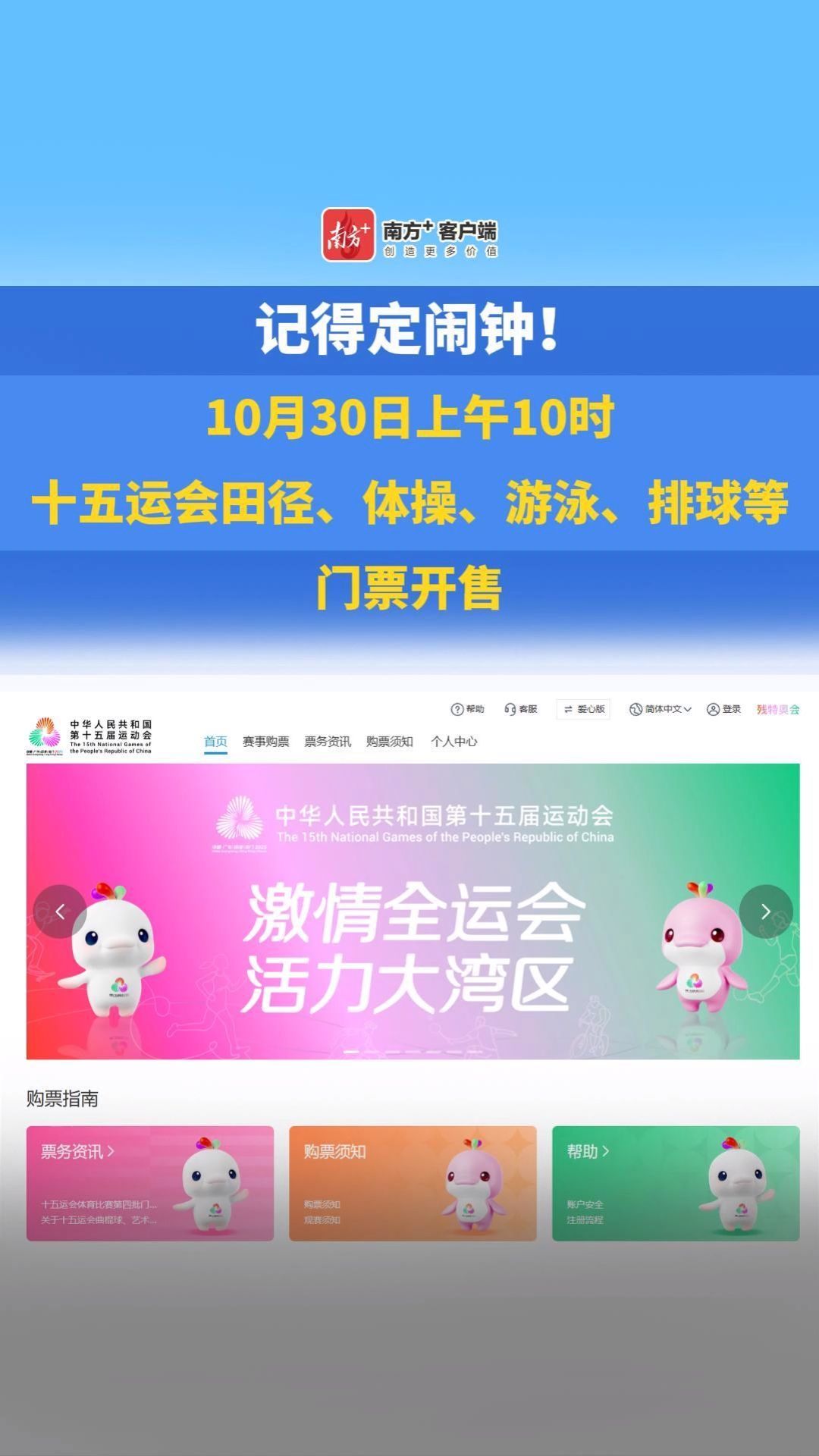 记得定闹钟!10月30日上午10时,十五运会田径、体操、游泳、排球等门票开售