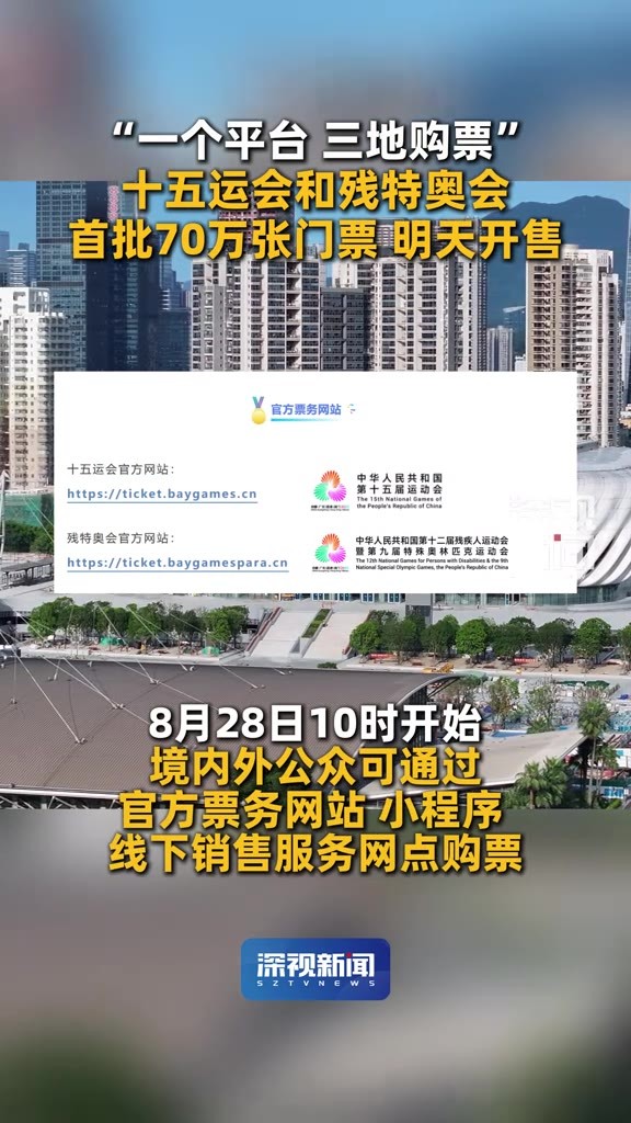 十五运会和残特奥会首批门票28日10时开售,可售门票约70万张