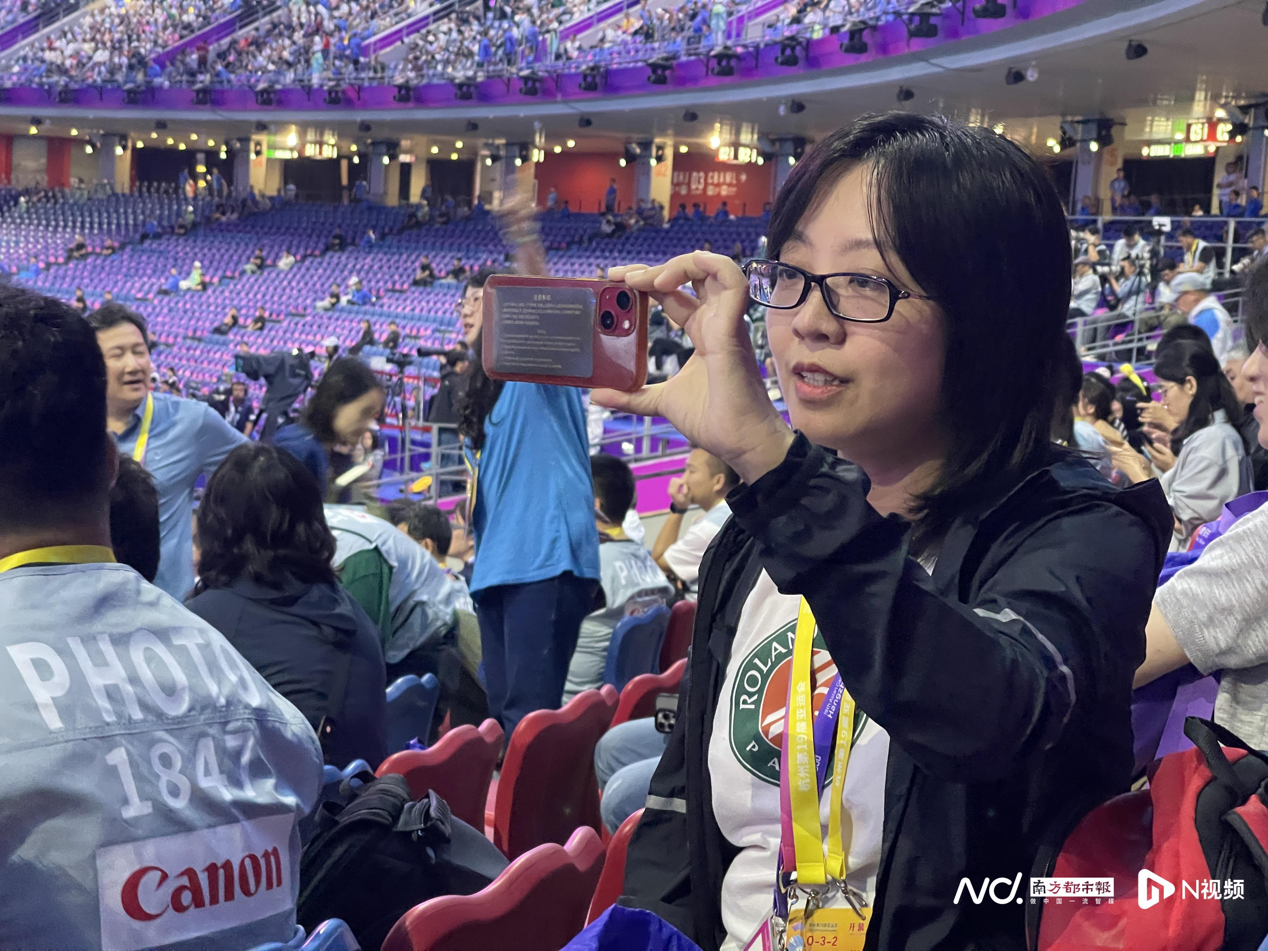 南都N视频记者汪雅云。此前在亚运会采访现场。