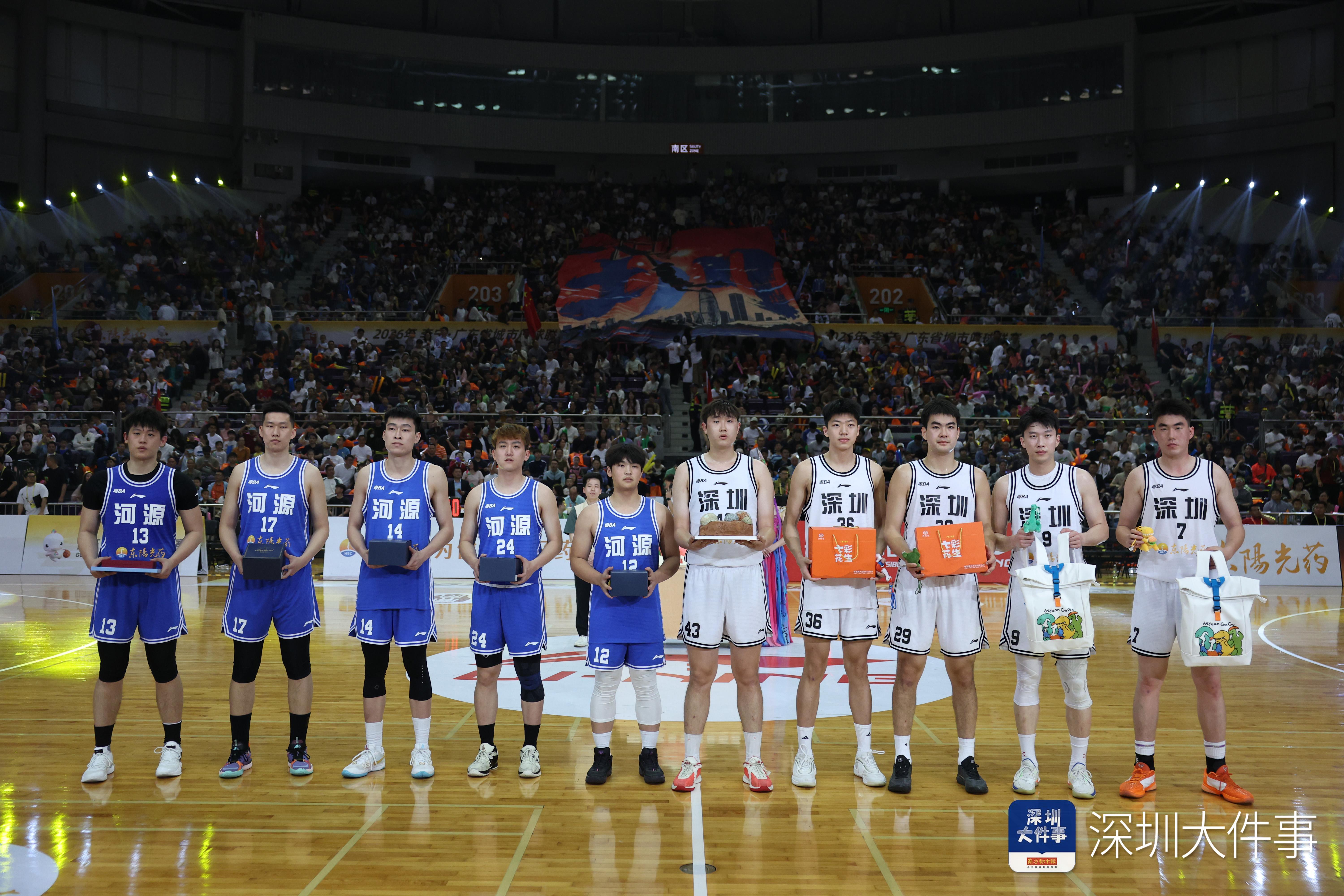 深圳队与河源队互赠礼品。南都N视频记者霍健斌摄