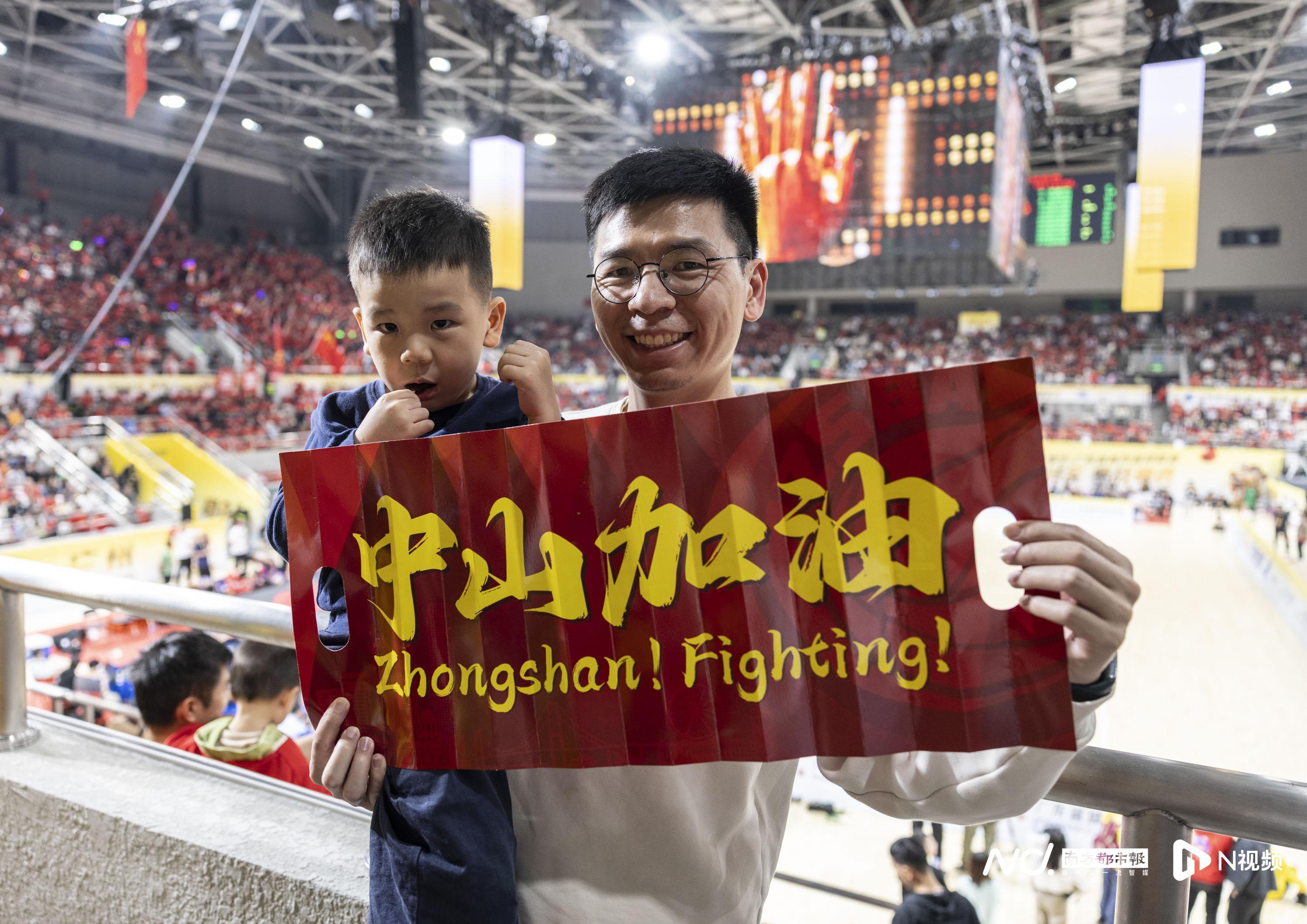 现场展开巨幅“中山,拼了”的应援手幅。南都N视频记者徐杰摄