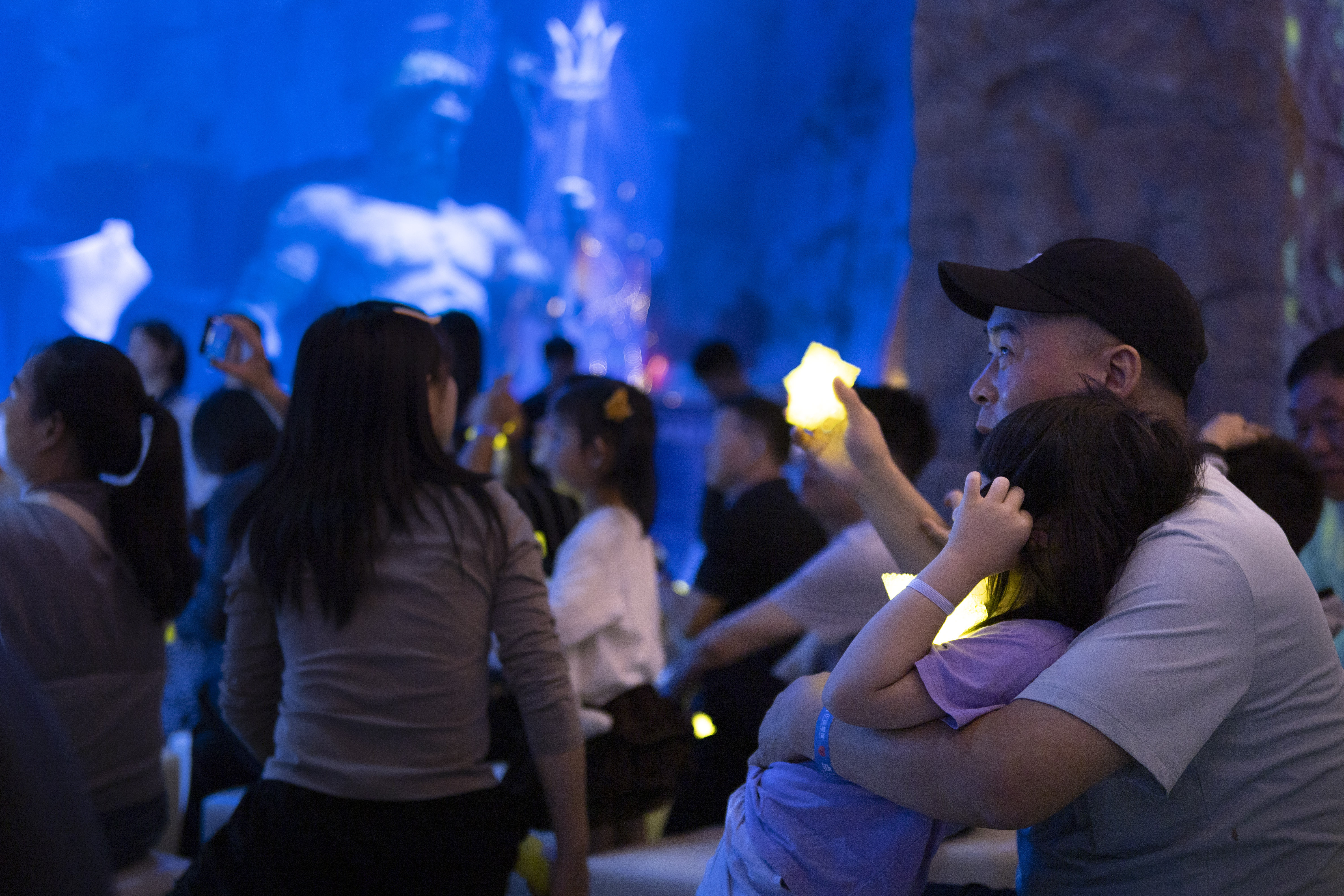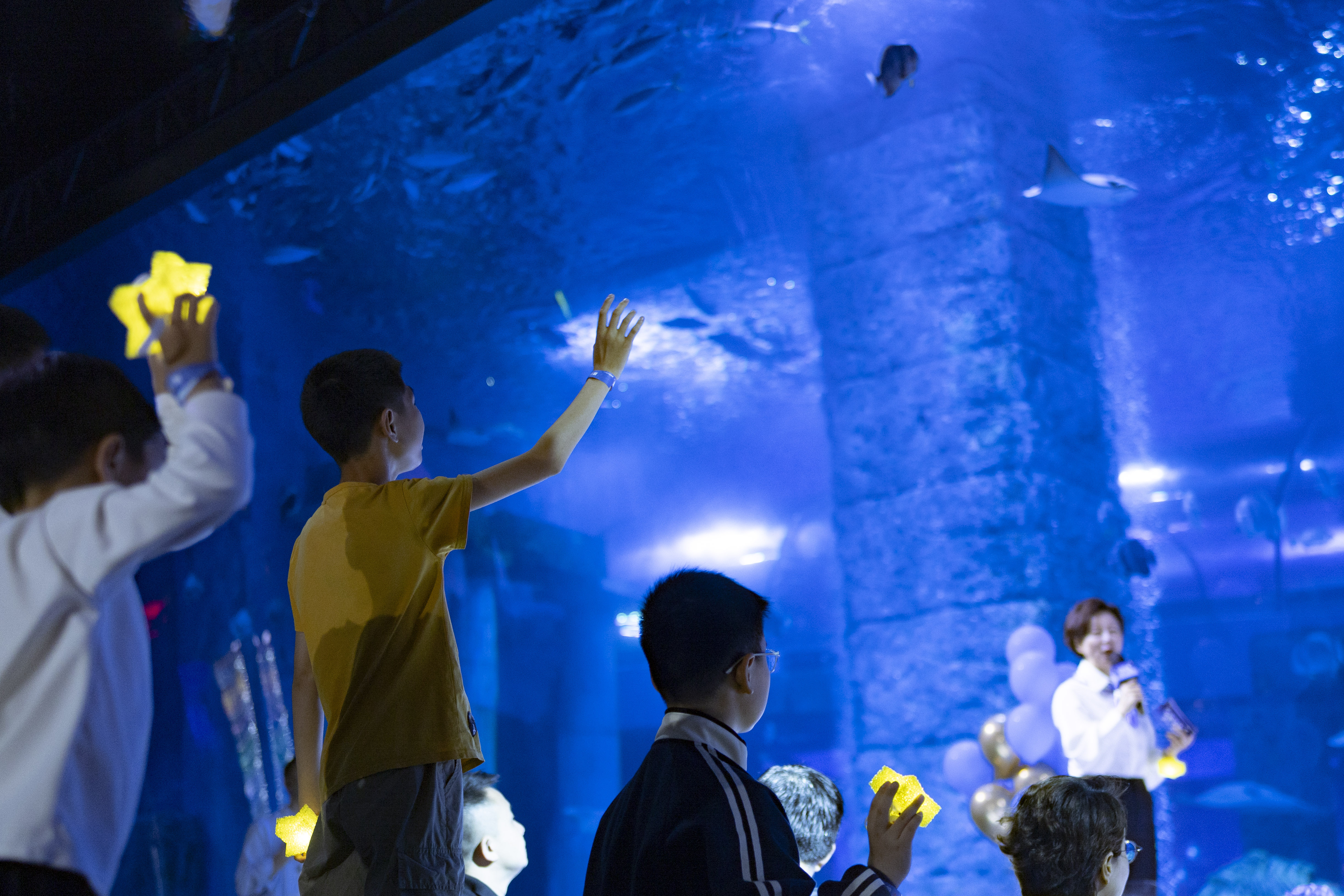 憨态可掬的企鹅、庞大温顺的海象、灵活游动的小鱼……孤独症孩子们在家长与志愿者的陪伴下畅游正佳四大场馆,趴在玻璃前看得出神,在沉浸式自然探索中深化对海洋动物的了解。当美人鱼、水下醒狮出场表演时,他们兴奋地挥舞起手中的星星灯,欢呼声此起彼伏。