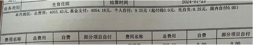 另一位在佛山市第一人民医院剖宫产的宝妈也感慨:“(医保)统筹给了挺多。”在她分享的账单中,生育住院支出总金额6239.97元,其中统筹账户支出6208.76元,个人现金支出31.21元。