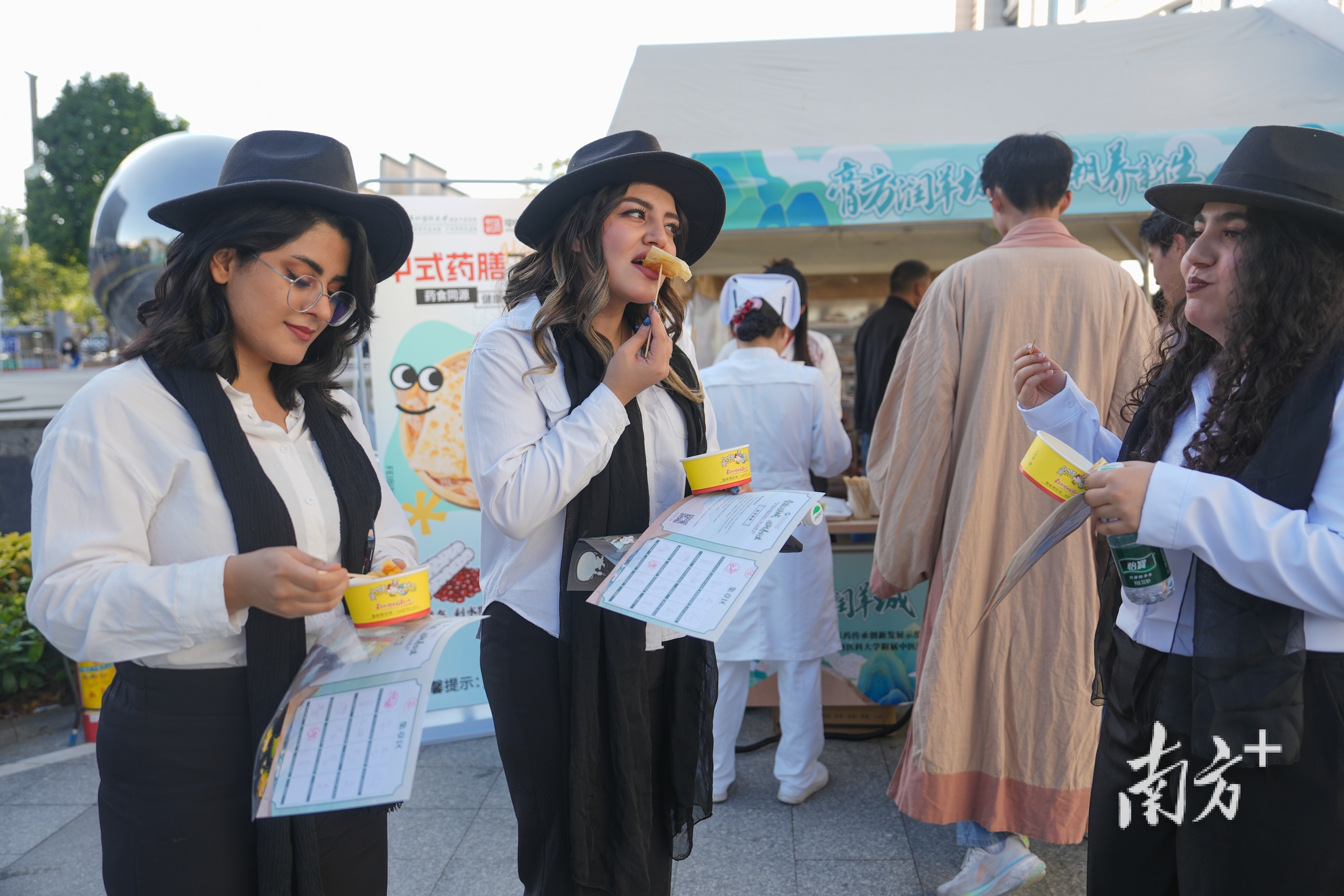 在药食同源茶饮点心区,广州医科大学国际学生莎拉与同学品尝着中药糕点,不时发出赞叹声。“这是我第一次参加这样的活动,感觉特别新奇。”莎拉说,来华3年来她始终对中医文化抱有浓厚兴趣,希望未来能更深入地学习和了解。