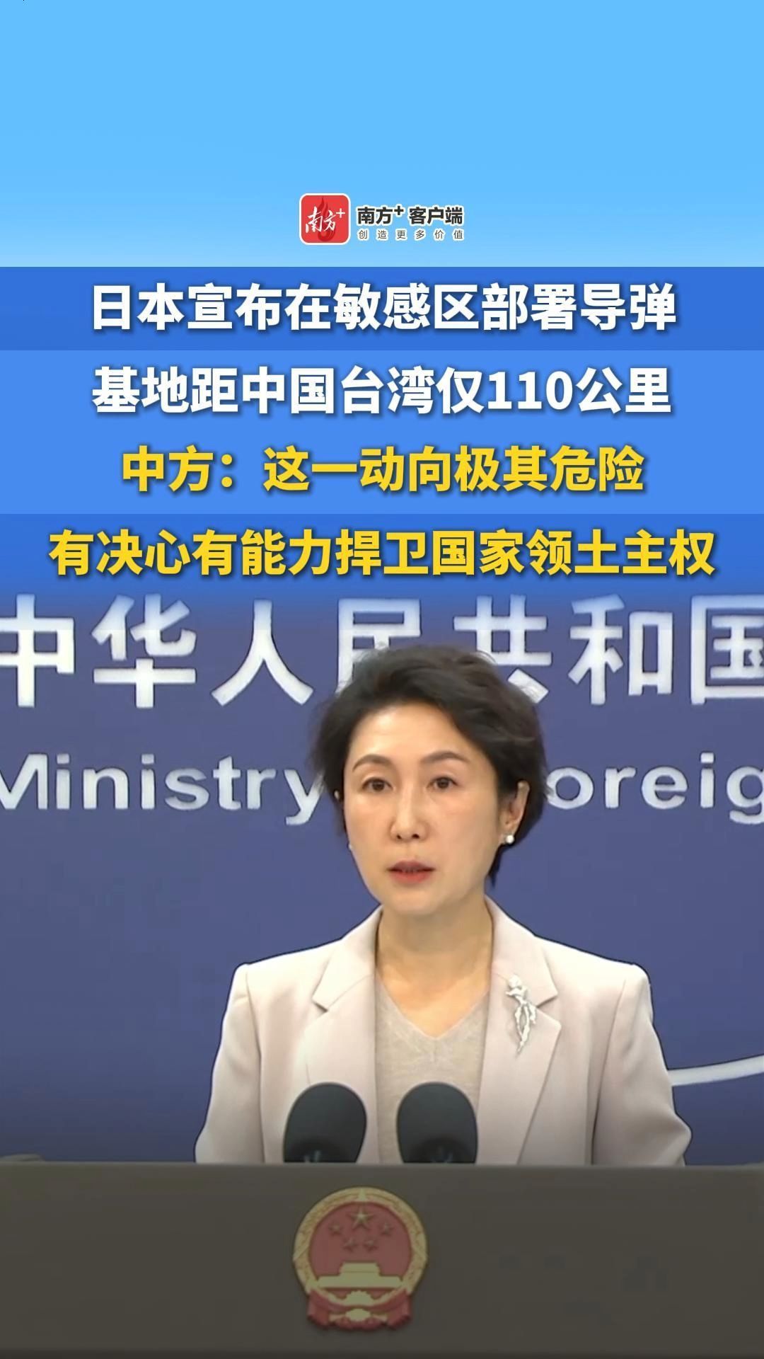 日本宣布在敏感区部署导弹,基地距中国台湾仅110公里,中方:这一动向极其危险,有决心有能力捍卫国家