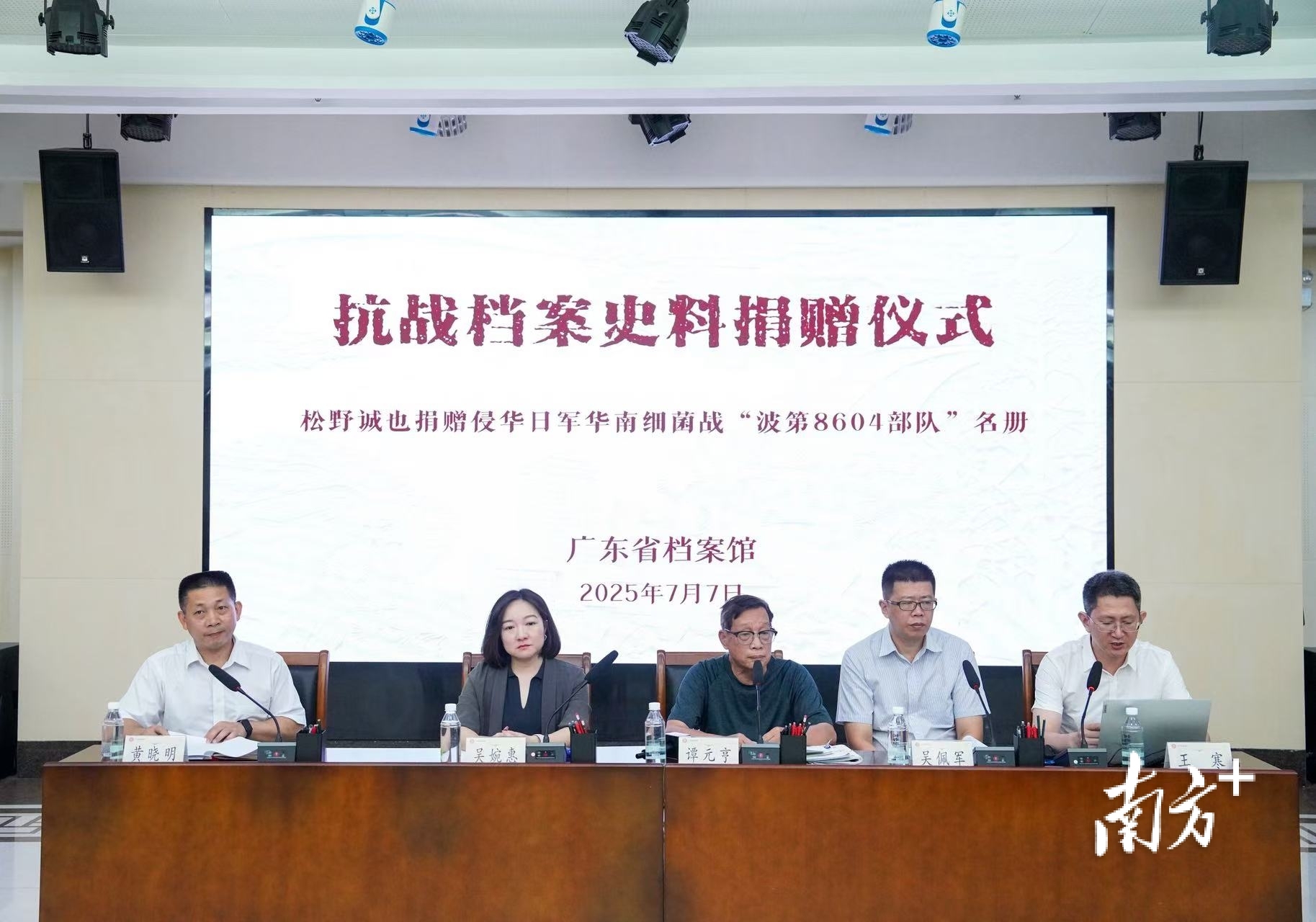 7月7日,全民族抗战爆发88周年之际,广东省档案馆举行“抗战档案史料捐赠仪式”,接收了日本学者松野诚也捐赠的侵华日军华南细菌战“波第8604部队”名册的彩色扫描件。这是该部队名册首次在国内整册出现。