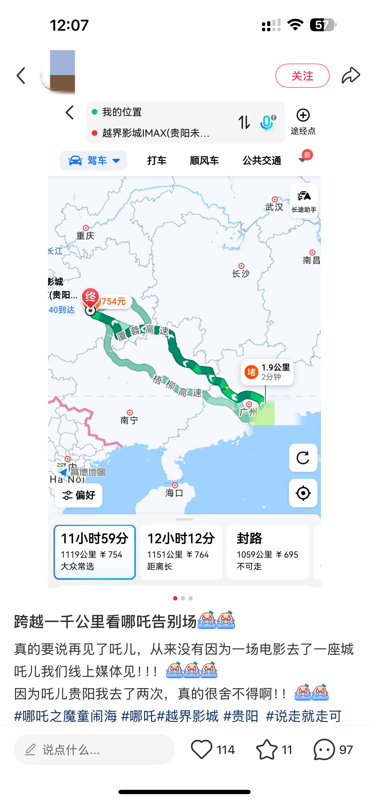今日便有观众在社交平台上晒出行程,称自己将从广东奔赴贵阳,跨越一千公里看《哪吒2》告别场。自该片上映以来,拥有全亚洲最宽32.16米、高18.17米的IMAX-GT激光巨幕的贵阳越界影城(双激光IMAX-GT未来方舟店)凭借极佳的视效呈现成为新晋热门打卡点,吸引全国各地的观众前往享受《哪吒2》“视效盛宴”。