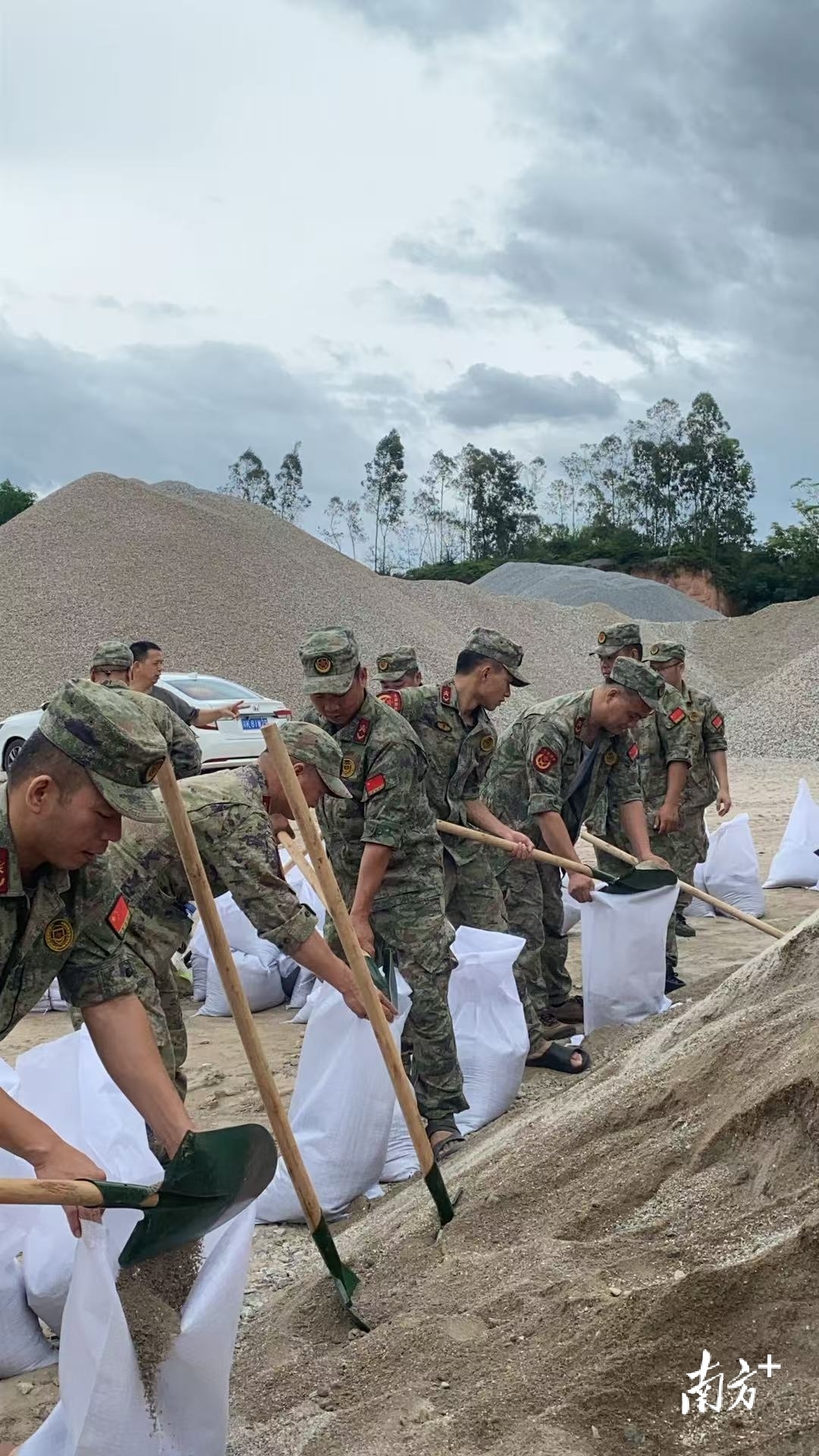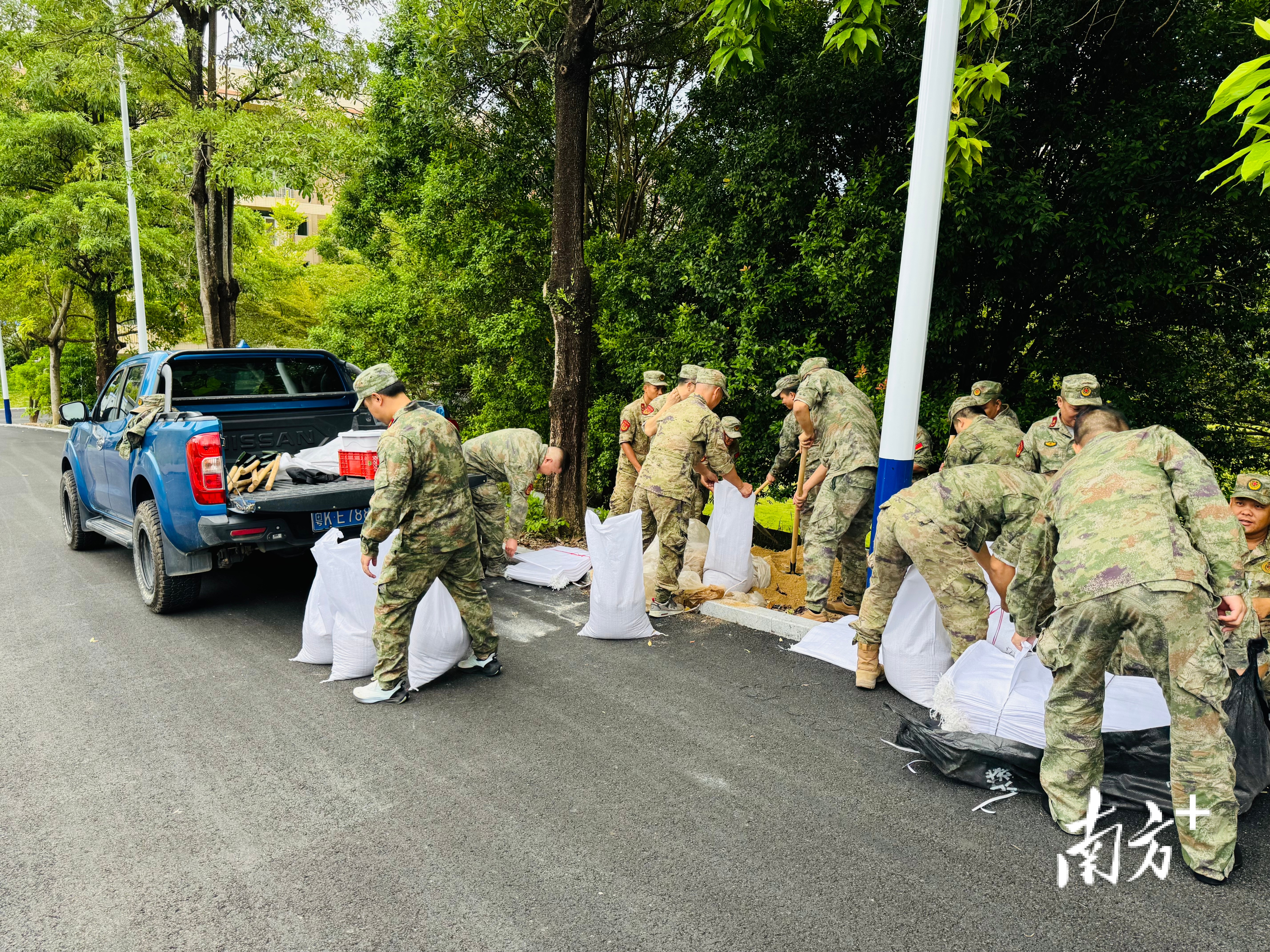 “快,沙袋再垒高一层!”“排水口必须保持畅通!”……9月24日,在信宜市各河道堤岸、地质灾害隐患点,一群身着迷彩服的身影正马不停蹄地装填沙袋、加固险段的声响与风雨欲来的气氛交织,一场应对台风“桦加沙”的防御战已全面打响。