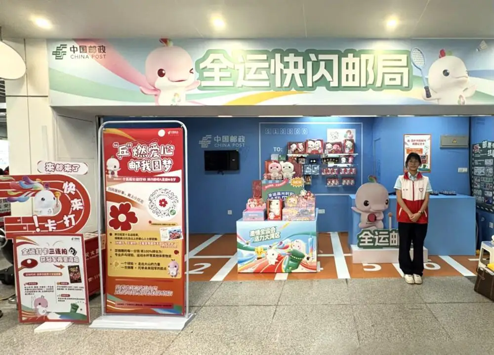 在从化客运站地铁站内,“全运快闪邮局”成为新晋网红打卡点,特许商品专区里的吉祥物公仔、运动主题邮册吸引市民驻足选购,首发的十五运会主题纪念戳让通勤族化身“集戳达人”,留下专属全运印记。