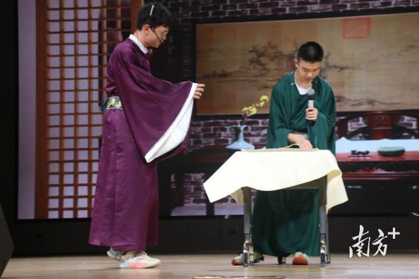 这是广雅中学历史科组打造的历史剧本创作与演绎大赛,聚光灯下,学生们纷纷打扮成历史人物,将自己置身于历史的长河中,以演绎“课本剧”的方式学习历史知识。