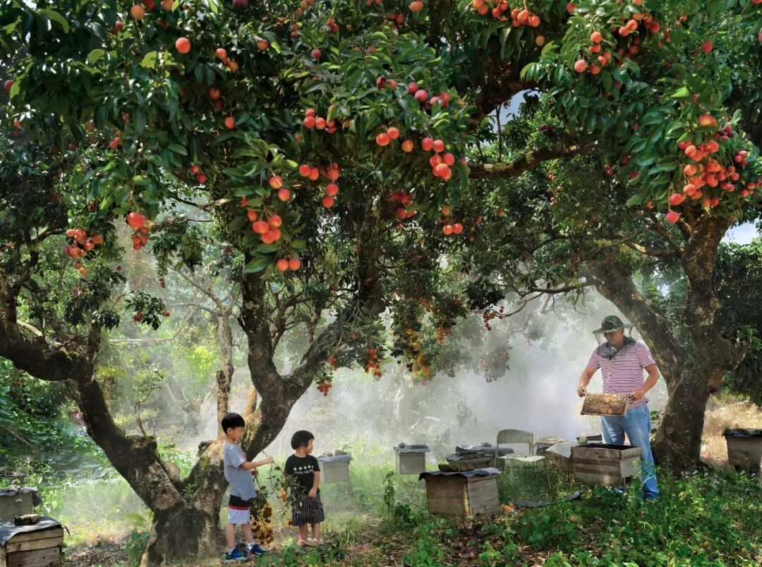 原广东省摄影家协会副主席唐卫东《荔枝人家》在从化大岭山林场取景,该片区属于特有的“晚熟地·晚熟荔”产区,恰逢荔枝丰收季,拍摄了农户一家采摘荔枝、养蜂的场景,展现了从化当地荔农喜迎丰收、积极劳动的精气神。