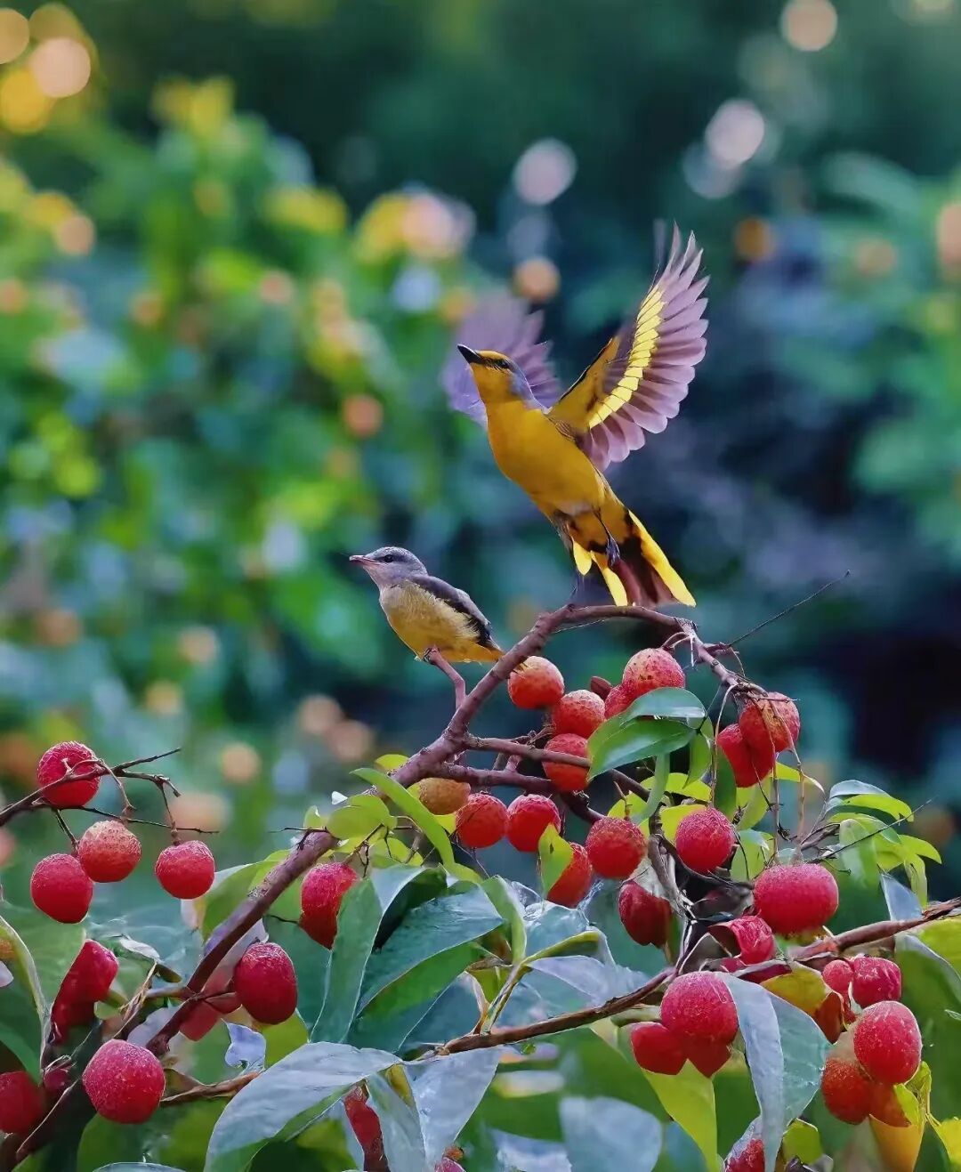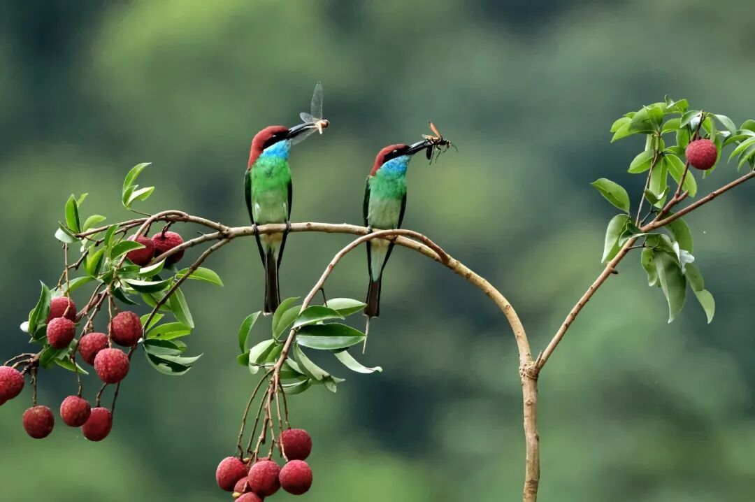 荔枝季期间,巢金红、王建国分别拍摄作品《荔红鸟欢》《荔鸟齐飞》,通过在荔枝成熟时按下快门,留下蓝喉蜂虎等特色鸟种与荔枝合影,他们表示:“鸟语果香、一动一静,反映了从化独特生态自然环境,山好水好不仅孕育了优质荔枝果品,也吸引了候鸟筑巢,形成一幅幅优美的生态画卷,这是非常好的拍摄素材。”