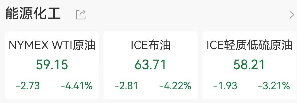国际油价快速跳水,WTI原油、布油双双跌幅超4%,WTI原油跌破60美元关口。