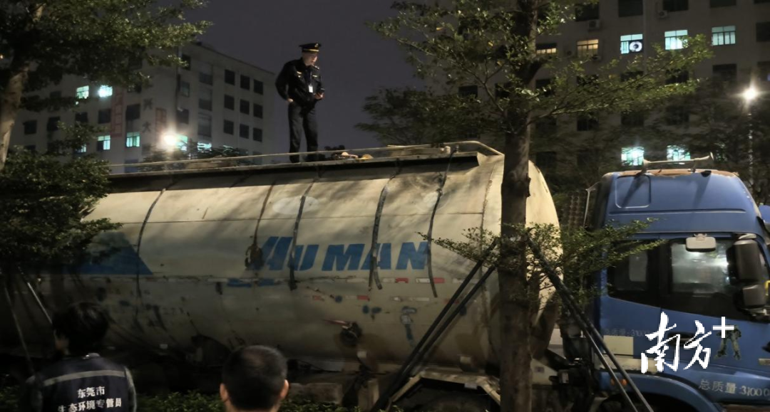 据了解,经过三天三夜的持续蹲守,12月19日凌晨1点左右,执法人员发现一辆重型罐式货车停靠在长安镇振安东路路边市政污水井旁,车辆周边留有黄色泥浆水残留液。经现场调查,该货车罐体内装有黄色泥浆沉淀物,其停放位置的市政污水井井盖处于打开状态,井口周边地面及井口内部均有黄色泥浆水残留痕迹。司机口述,已将货车罐体内装的黄色泥浆水通过管道排放至该市政污水井内。
