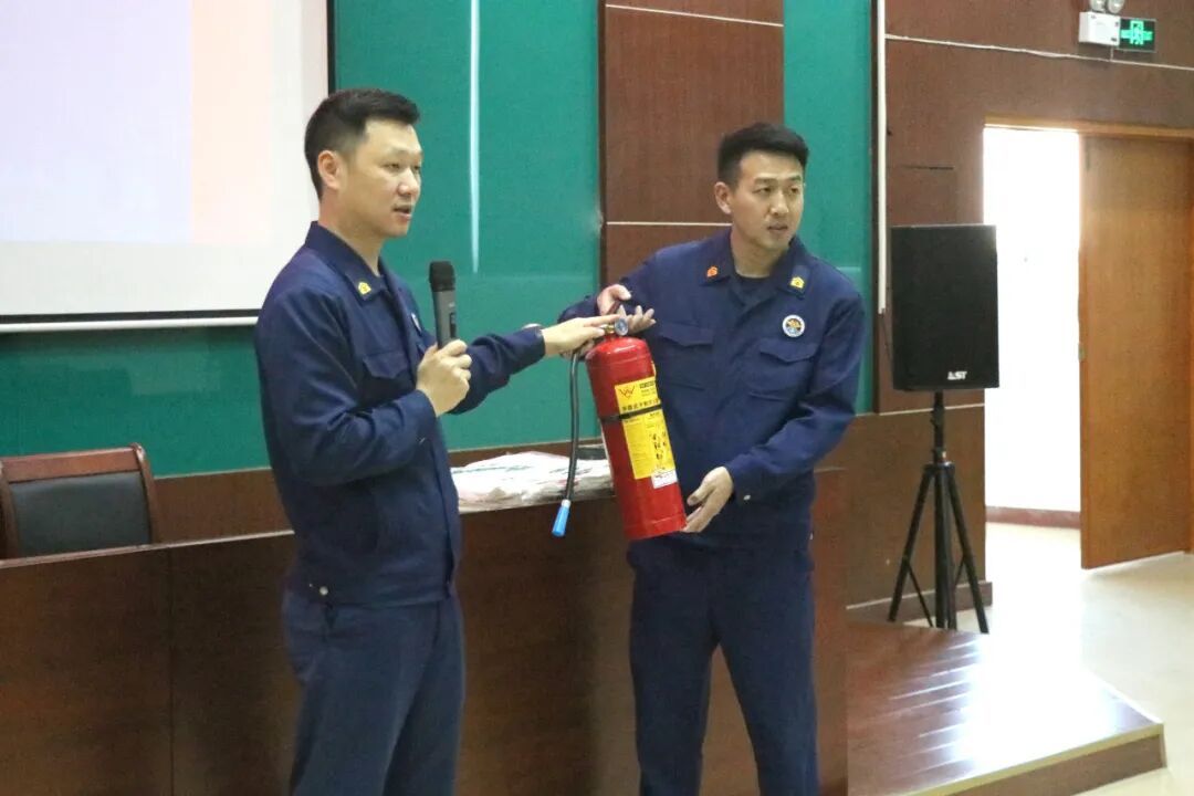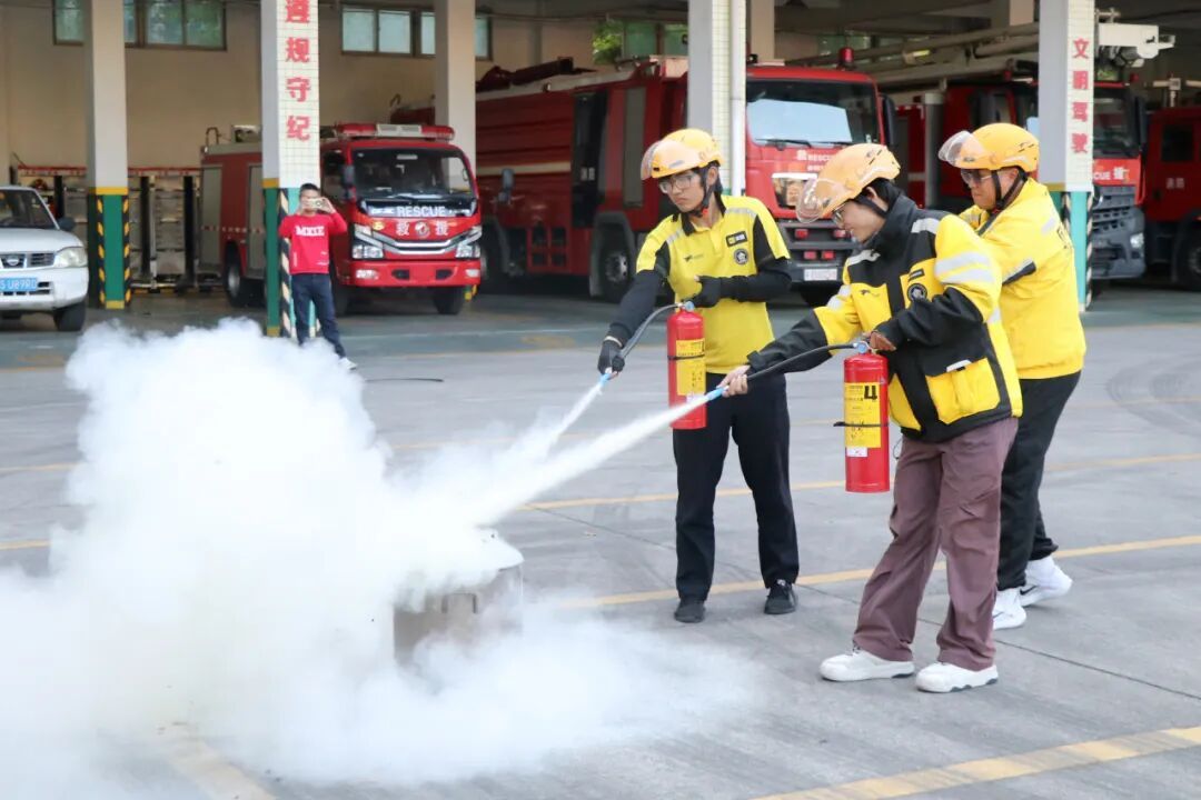 此外,还在训练场地开展了灭火实操,宣教员演示干粉灭火器“提、拔、握、压”使用要领后,骑手们分组实操练习,在宣教员指导下规范完成操作,切实掌握了初期火灾处置技能。