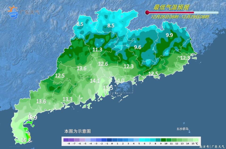 28日,粤西偏西多云,其余大部分市县晴到多云。最低气温:粤北、珠三角北部市县7~10℃,局部5~7℃,南部沿海市县12~15℃,雷州半岛15~17℃,其余大部分市县10~12℃。