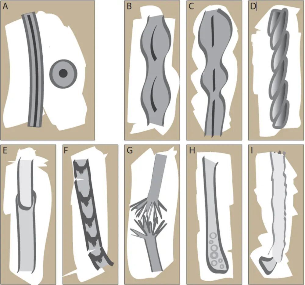 各种各样的发干异常(A除外,A是正常头发的纵横切面)图片来自参考文献
