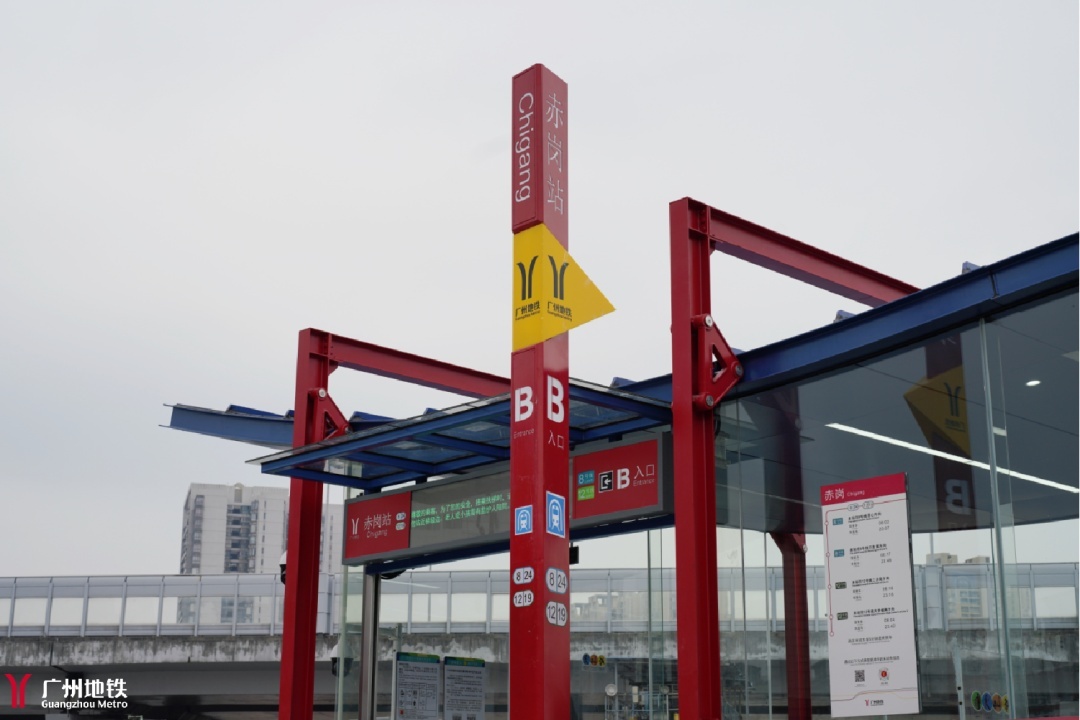 十二号线赤岗站位于猎德大桥东侧、新港中部西侧及黄埔涌围合的三角地带,设B、D、E三个出入口,加上八号线原有的C1、C2口,车站将有五个出入口供周边市民使用。