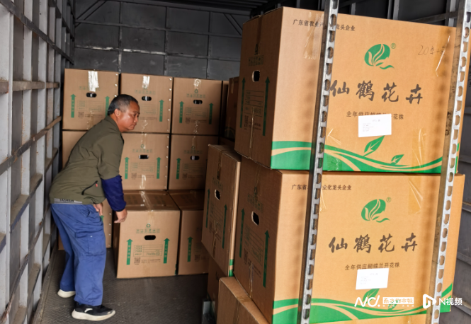 兰花装车中。据了解,本次出口香港的蝴蝶兰共计3400株,是结合香港年宵花市场需求精心筛选,主打红色、粉色、紫色等喜庆吉祥的花色,包含大辣椒、藏宝图、粉冠军、米歇尔、太阳神等十余个易养护、观赏性强的优质品种,力求更贴合香港市民的节日用花与居家摆放需求。供港的兰花主要销往香港惠康超市和香港最大24小时网上购物商场HKTVmall。当天发车抵港后,惠康超市即刻开售,HKTVmall同步开展了“兰花直送”线上直播活动,香港市民购花热情高涨,线上线下询花下单不断,当晚销售兰花近千株。