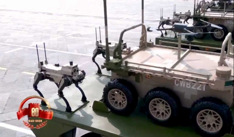 “机器狼”出现在陆上无人作战方队。央视解说词提到:受阅装备为侦打突击、扫雷排爆、班组支援等无人战车,可远程操控、自主行动、灵活编组,实现陆上有人、无人协同作战新突破。