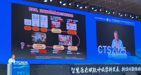 在这金色的季节,在这座有着三千年历史底蕴的楚汉名城——湖南长沙,由中华医学会和中华医学会呼吸病学分会主办的中华医学会呼吸病学年会-2025(第二十六次呼吸病学学术会议)于2025年9月11日盛大召开。9月12日,来自广州国家实验室、国家呼吸医学中心、广州呼吸健康研究院、广州医科大学附属第一医院的钟南山院士,就《禽流感/人流感的患病现状及治疗》围绕禽流感/人流感对人类健康的威胁、治疗现状以及对禽流感/人流感的防控展望进行精彩报告。