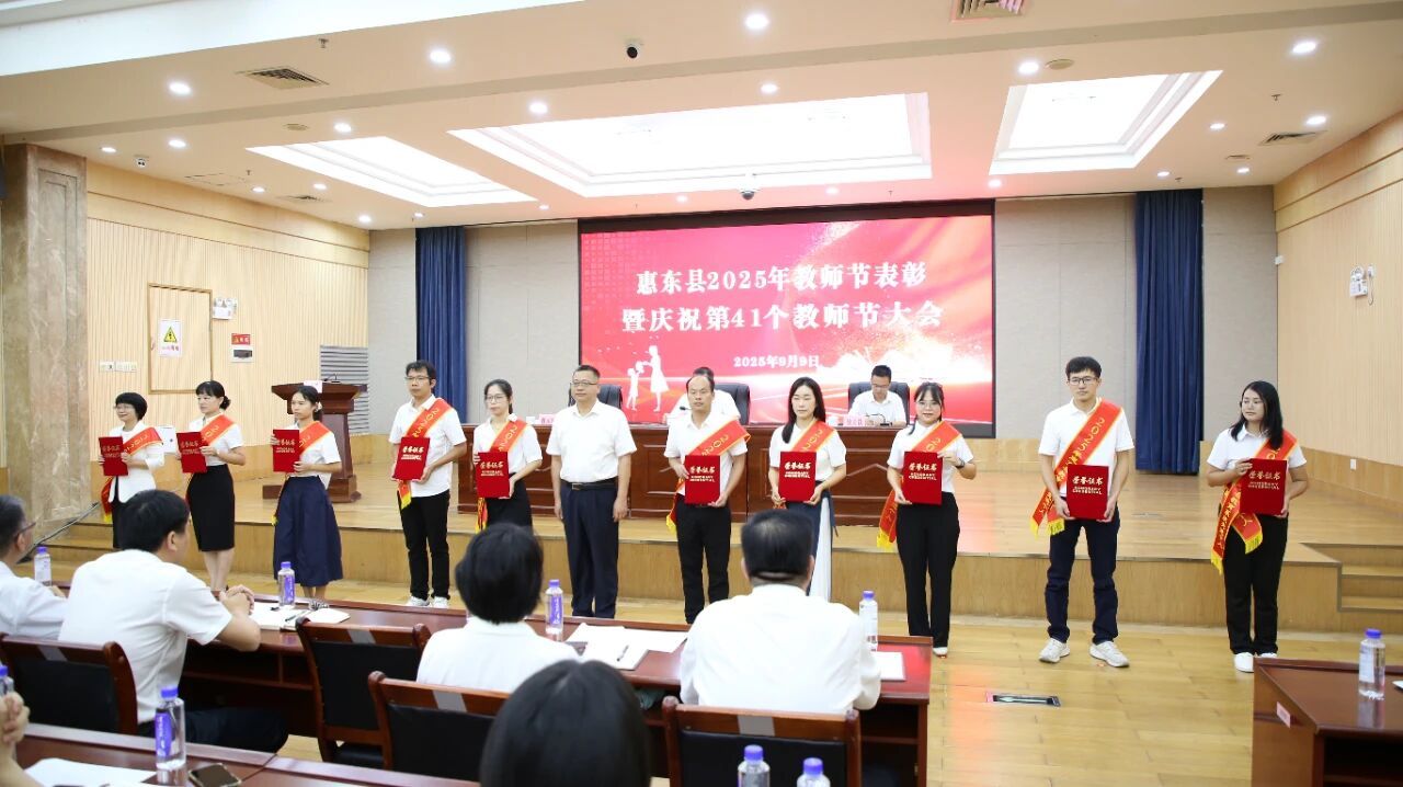 在第41个教师节到来之际,9月9日,惠东县2025年教师节表彰大会举行。惠东县委常委、常务副县长刘勇辉,各镇(街道、度假区、旅游区)和惠东县直有关部门负责人参加会议。