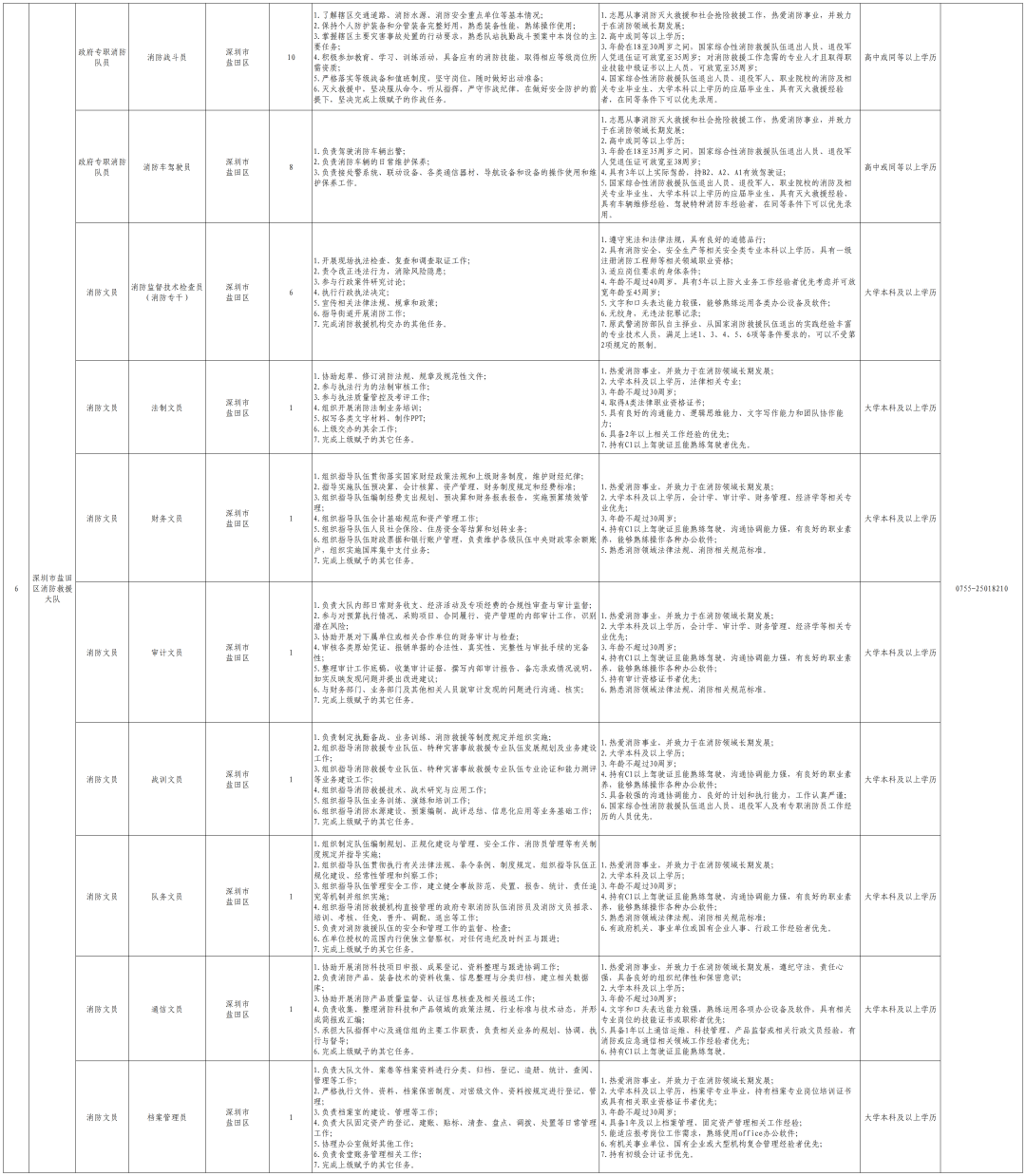 (5)岗位具体要求以《深圳市消防救援支队2026年度第一批次政府专职消防员招录计划表》(附件1)为准。