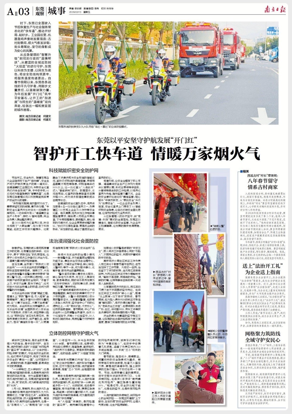 从消防蓝骑的快速响应,到网格中心的全域防控……东莞正构建起“上下联动、左右协同”的安全防护网,让烟火气更浓郁,让生产路更顺畅。