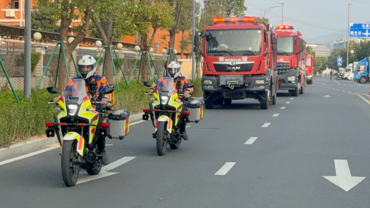 东莞市消防救援支队九大队开启“车巡+摩巡”的立体防控模式。
