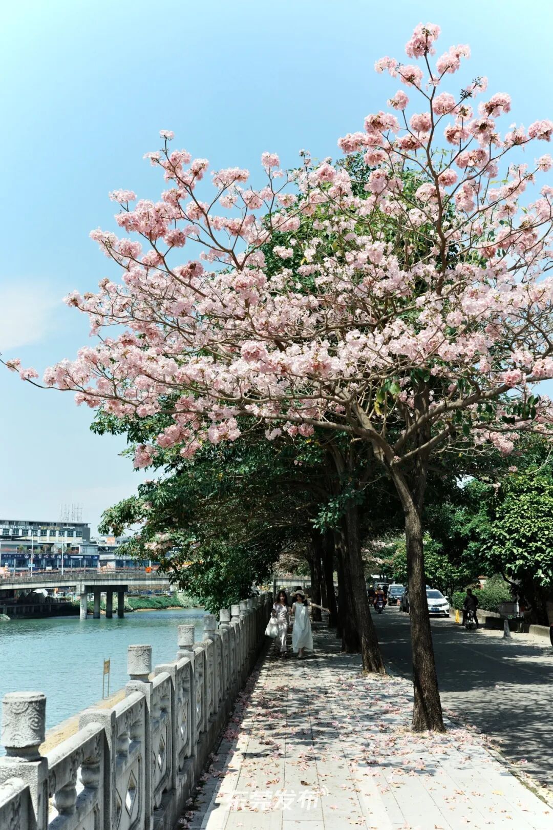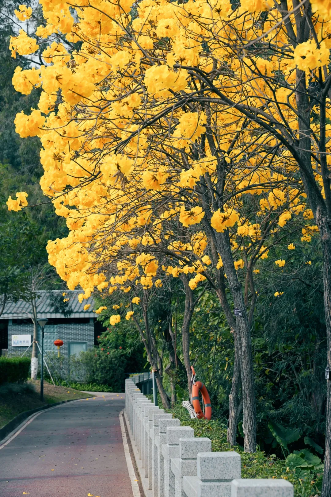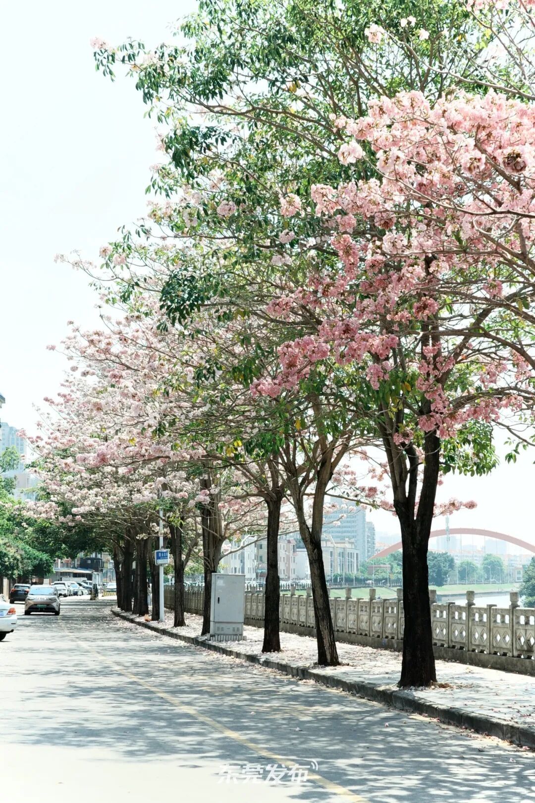 种满风铃木的坝头沿河东路