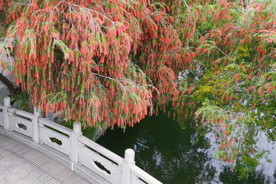 缀满绒球般的绯红花穗